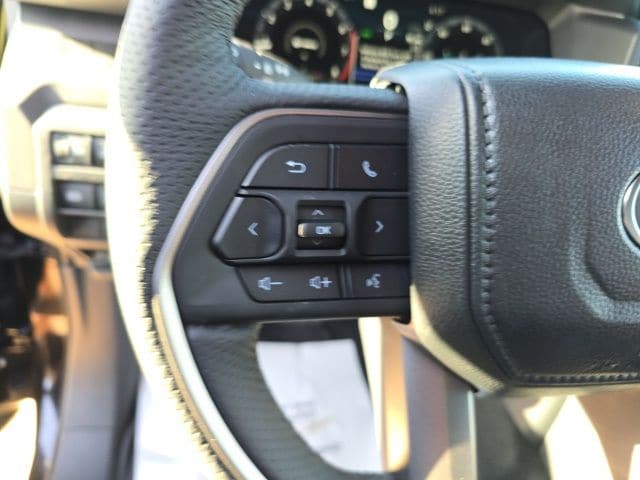 - Leather-trimmed manual tilt/telescopic steering wheel with phone, audio, display/infotainment, and driver assist controls.