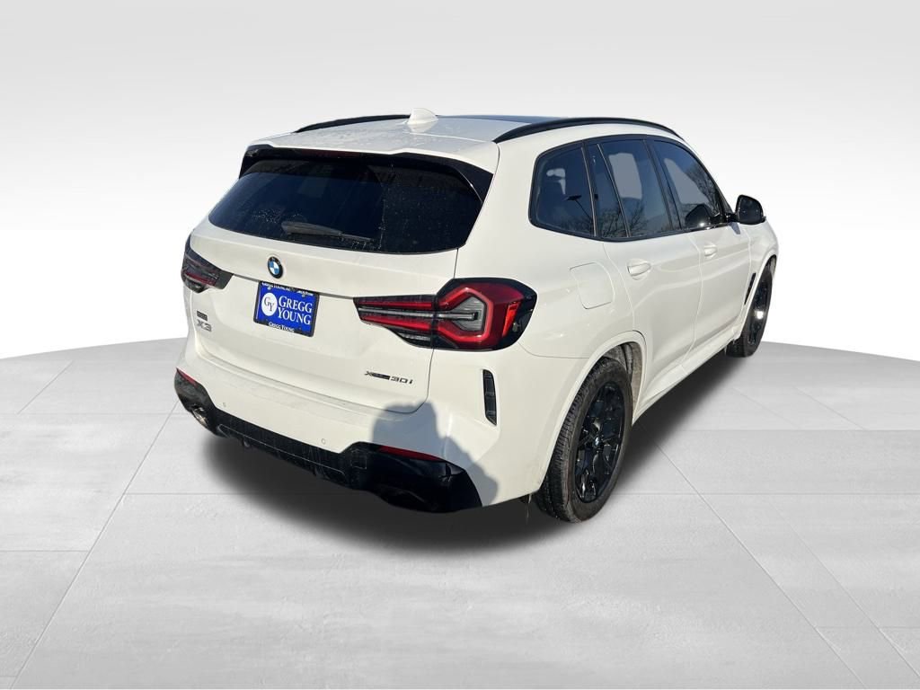 Smart and refined, our **2023**BMW**X3**xDrive30i**Navigation**Sunroof** in Alpine White is built to elevate your drive with comfort and capability. Powered by a TurboCharged 2.0 Liter TwinPower 4 Cylinder supplying 248hp to an 8 Speed Steptronic Automatic transmission to get your days off to a quick start. This All Wheel Drive SUV also has a suspension tuned for dynamic capability and sees nearly 28mpg on the highway. An iconic kidney grille leads the way for our X3's exceptional exterior, which shows off adaptive LED lighting, a sunroof, and striking alloy wheels.