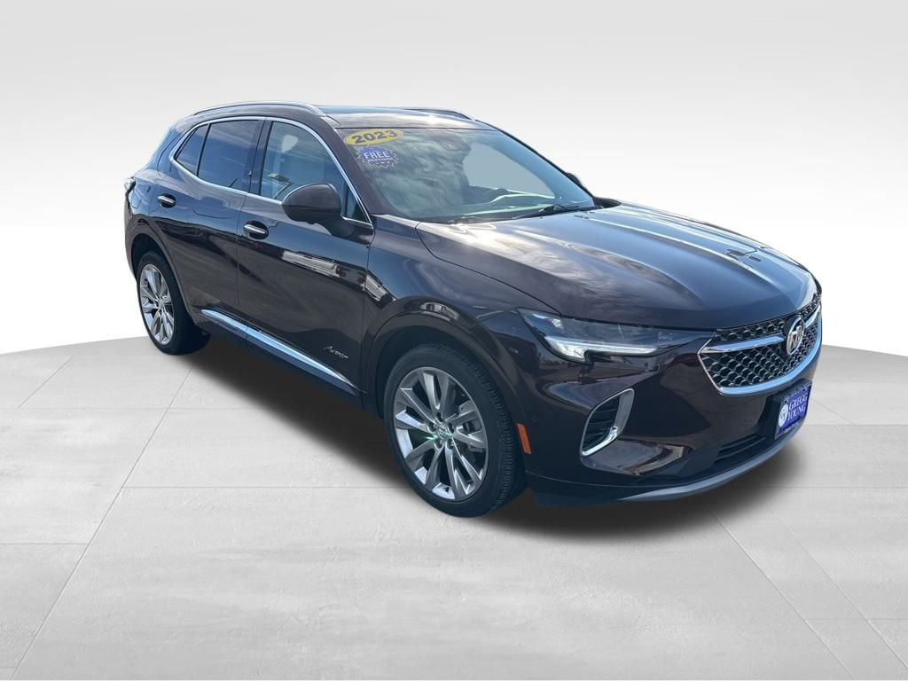 Sophisticated and expressive, our Accident Free, One Owner 2023 Buick Envision Avenir AWD brings you bold benefits for better adventures in Rich Garnet Metallic! Motivated by a TurboCharged 2.0 Liter EcoTec 4 Cylinder that serves up 228hp matched to a 9 Speed Automatic transmission for quick and quiet acceleration. Continuous damping control helps you move with tremendous confidence, and our All Wheel Drive SUV also scores nearly 29mpg on the highway. Our Envision's detailed design cues draw attention with enhanced LED lighting, 20-inch alloy wheels, a panoramic sunroof, heated power-folding mirrors, silver roof rails, and a hands-free liftgate.