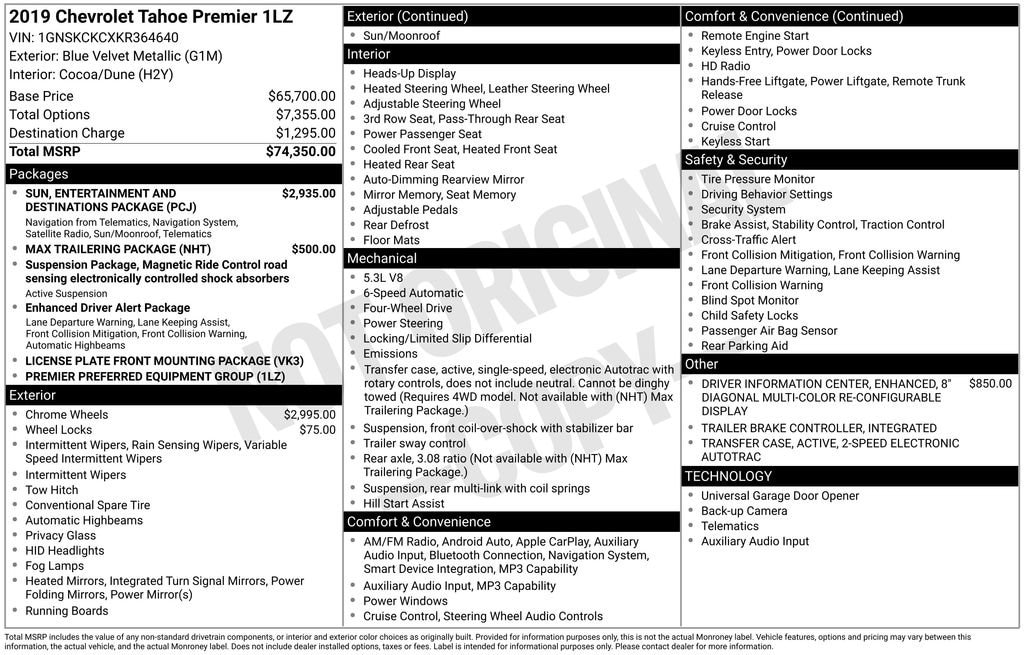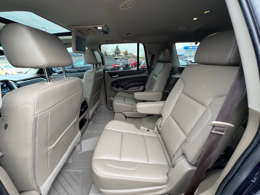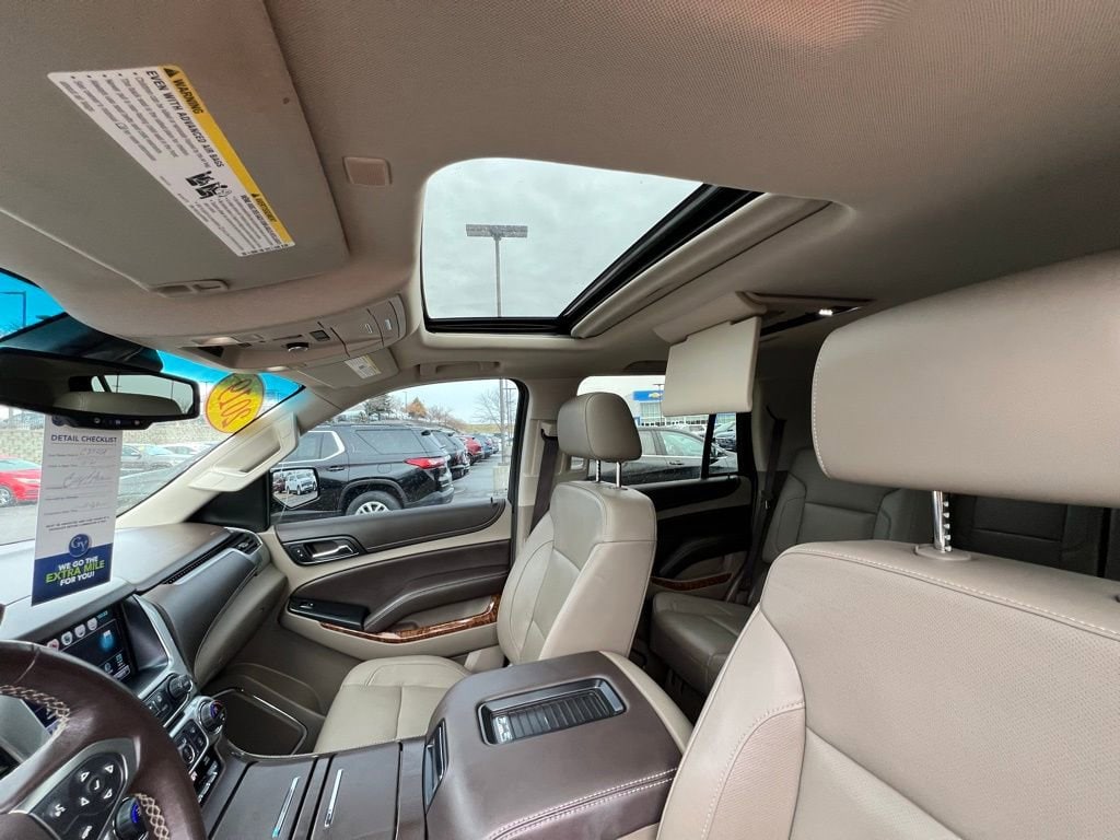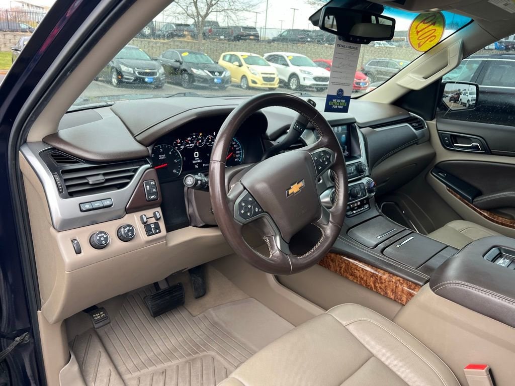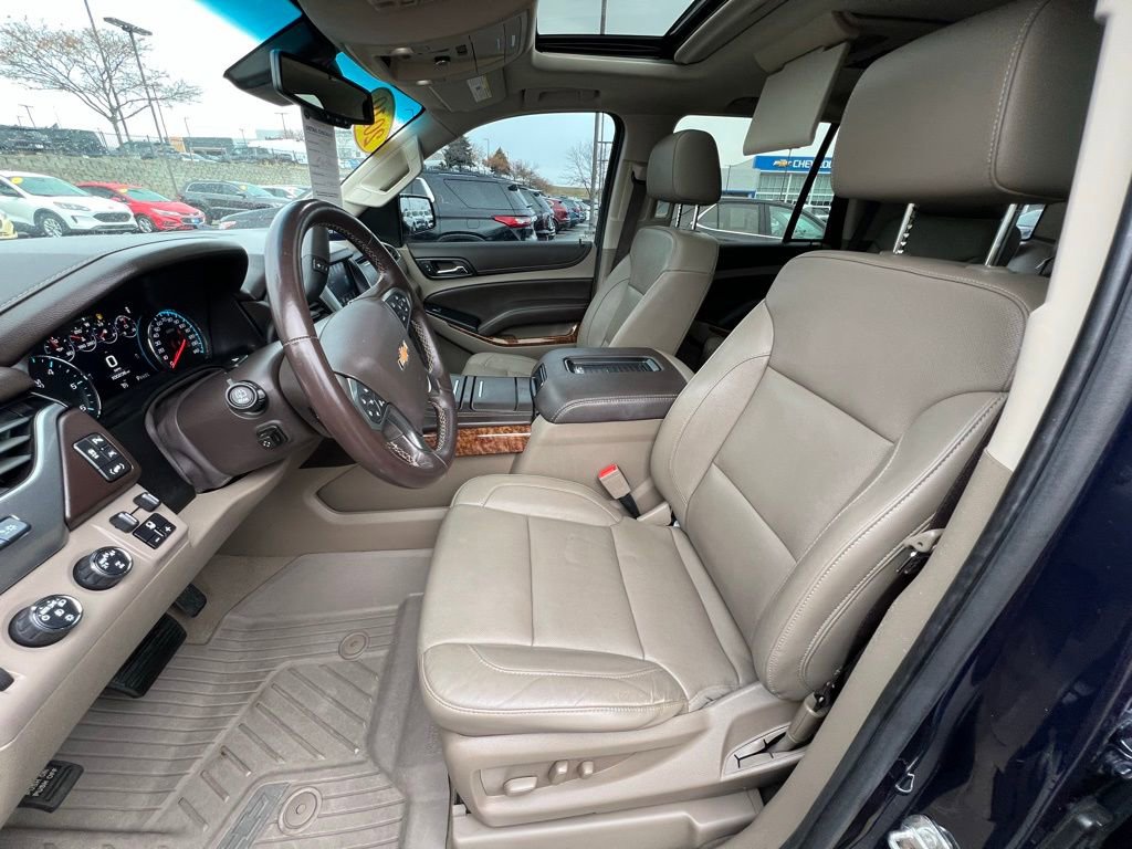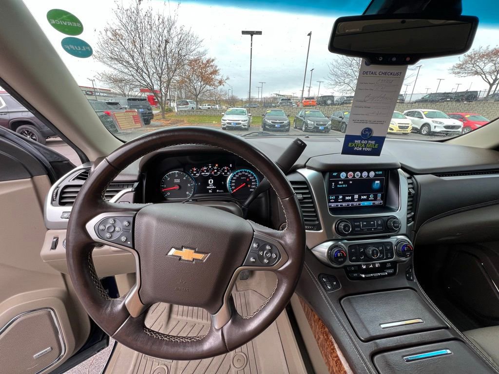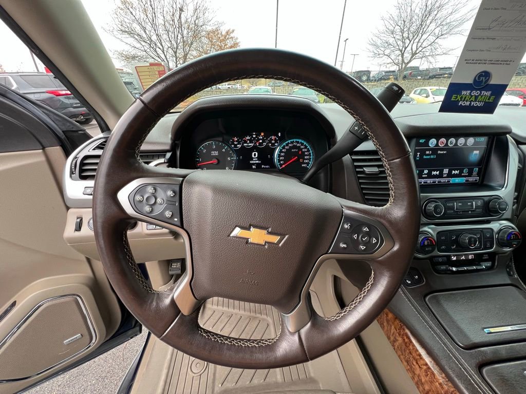 Our upscale **Accident Free**2019**Chevrolet**Tahoe**Premier**4WD**Sun, Entertainment & Destinations Package**Max Trailering Package** is confident, capable, and connected in Blue Velvet Metallic! Powered by a 5.3 Liter EcoTec3 V8 delivering 355hp tethered to a 6 Speed Automatic transmission for easy towing and passing. This Four Wheel Drive SUV also features Magnetic Ride Control to help handle whatever comes your way, and it scores nearly 21mpg on the highway. Make an imposing impression anywhere with our Tahoe's LED lighting, HID headlamps, fog lamps, hands-free tailgate, a sunroof, and bold alloy wheels!