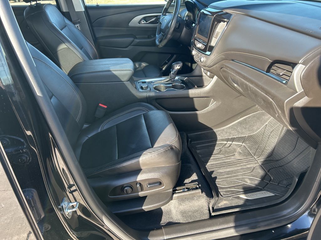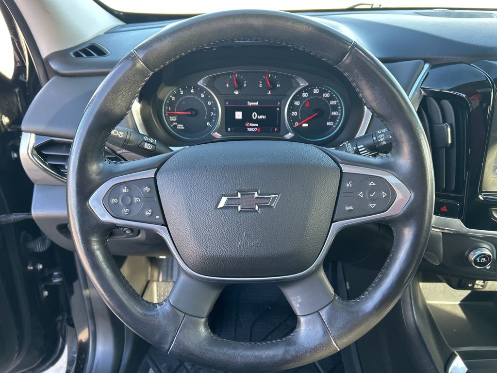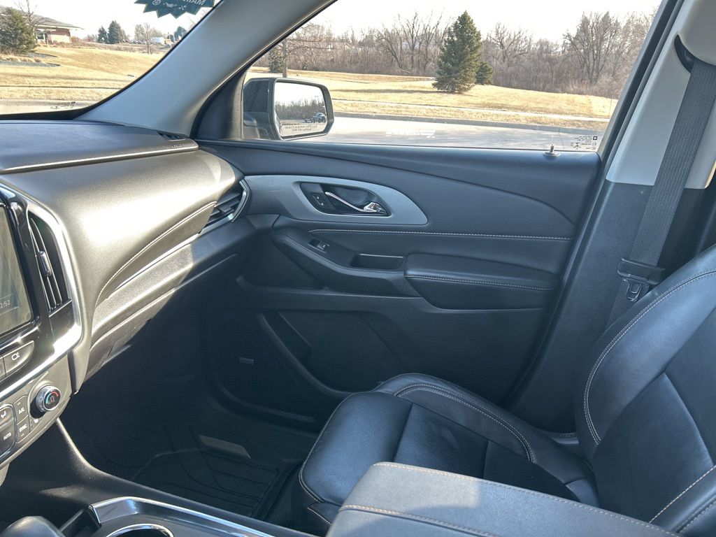 Bold and sporty, our **2021**Chevrolet**Traverse**RS**AWD**Navigation**Heated Steering Wheel** certainly stands out from the crowd with its athletic design! Motivated by an energetic 3.6 Liter V6 offering 310hp tethered to a 9 Speed Automatic transmission to power you through every day. This All Wheel Drive SUV also delivers responsive handling and is great for road trips, running the kids to school, and even just going to work, and it achieves nearly 27mpg on the highway. Standing strong and proud, our Traverse commands attention with exclusive RS roof rails, black badging, and 20-inch dark-painted alloy wheels that complement HID headlamps, fog lights, and a power-programmable tailgate.