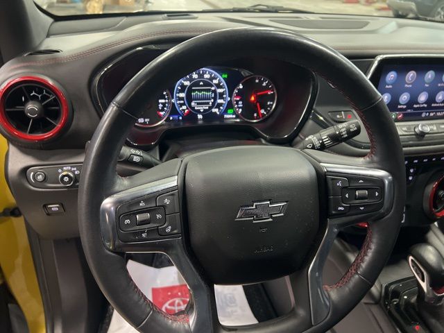 Start driving our **2022**Chevrolet**Blazer**RS**AWD**Heated Seats**Heated Steering Wheel** in Nitro Yellow Metallic, and prepare for stares! Motivated by a 3.6 Liter V6 providing 308hp matched to a 9 Speed Automatic transmission for spirited performance. This All Wheel Drive SUV is also easy to maneuver and fun to pilot, plus it returns nearly 26mpg. A stylish design is another benefit of our Blazer, which is ready to roll with an exclusive RS grille set off by LED lighting, HID headlamps, a hands-free liftgate, 20-inch alloy wheels, heated mirrors, and dual exhaust outlets for a fantastic finish.