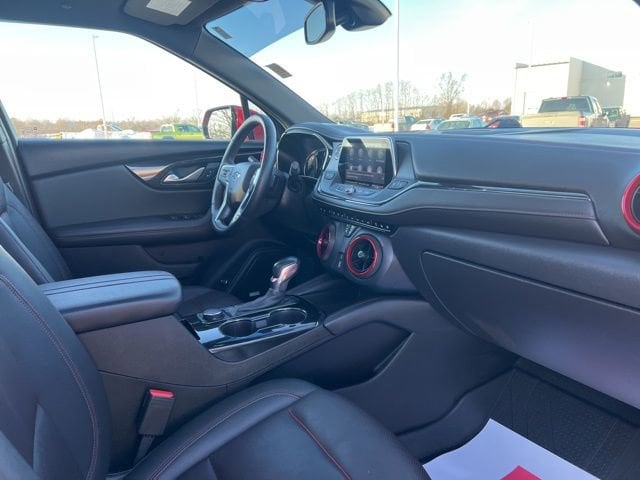Fire up our 2022 Chevrolet Blazer RS AWD with the Enhanced Convenience Pack, and you'll feel like you're ready for anything in Red Hot! Motivated by a 3.6 Liter V6 providing 308hp matched to a 9 Speed Automatic transmission for spirited performance. This All Wheel Drive SUV is also easy to maneuver and fun to pilot, plus it returns nearly 26mpg on the highway. A stylish design is another benefit of our Blazer, which is ready to roll with an exclusive RS grille set off by LED lighting, HID headlamps, a hands-free liftgate, 21-inch gloss black aluminum wheels, a panoramic sunroof, heated mirrors, and dual exhaust outlets for a fantastic finish.