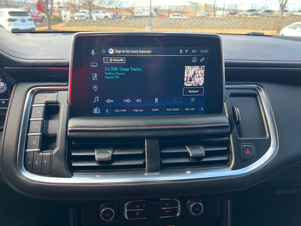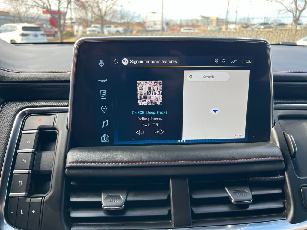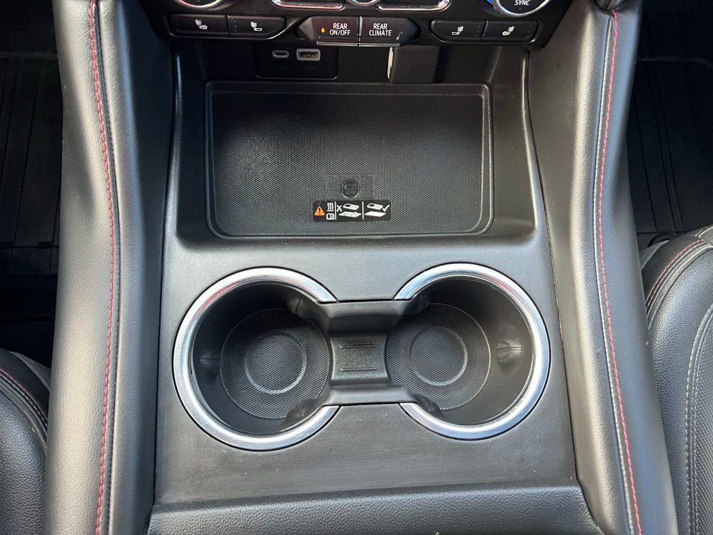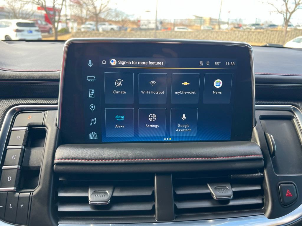 More exclusive details await in our RST cabin, including a panoramic sunroof, Jet Black leather heated power front seats with red stitching that complement our package's heated second and power third rows and a heated leather power steering wheel. Our Tahoe takes connectivity to the next level with a 10.2-inch touchscreen, a 12-inch driver display, navigation, wireless Android Auto®/Apple CarPlay®, WiFi compatibility, wireless charging, Bluetooth®, and Bose audio.