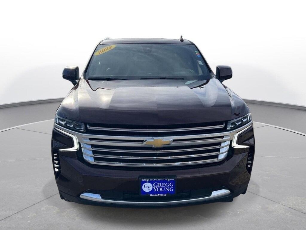 Why BUY from Gregg Young Chevy Omaha? When you choose this Auburn Metallic 2022 Chevrolet Tahoe High Country with 62,928 miles, you are not just buying a used vehicle - you are investing in quality, reliability and peace of mind. Our clientele depend on us for Transparent Pricing, Convenience and, most importantly, Customer FIRST Service! All purchases include 5 year Complimentary Maintenance Package, valued at over $1,000! No Accidents! One Owner! What this vehicle includes: Preferred Equipment Group 3LZMemory SettingsFront High-Back Reclining Bucket Seats3rd Row 60/40 Power-Folding Split-Bench SeatPower Release 2nd Row Bucket SeatsDriver and Front Outboard Passenger AirbagsChrome Door Handles with Body-Color StripColor-Keyed Carpeting Floor Covering1st and 2nd Row Color-Keyed Carpeted Floor MatsRemote StartBright Front and Rear Door Sill PlatesRear Camera Mirror WasherFloor ConsoleInside Rearview Auo-Dimming Rear Camera MirrorOutside Heated Power-Adjustable MirrorsStop/start System Disable ButtonSafety Alert SeatChevrolet Infotainment 3 Premium System RadioHill Descent ControlWireless ChargingHeated 2nd Row Outboard SeatsHeated Steering WheelAutomatic Stop/start6.2L EcoTec3 V8 EngineDual Exhaust SystemPower Tilt and Telescopic Steering ColumnLeather-Wrapped Steering Wheel2-Speed Active Electronic Autotrac Transfer CaseWheels: 22" X 9" Sterling Silver Premium PaintedPerforated Leather Seat TrimLED Daytime Running LampsHands-Free Rear Power Programmable LiftgateSiriusXM Radio with 360LEnhanced Driver Information CenterRear Cross Traffic AlertUniversal Home RemoteInfotainment DisplayLane Change Alert with Side Blind Zone AlertRear Pedestrian AlertBose 10-Speaker Centerpoint Surround Audio System FeatureHD Surround Vision15" Diagonal Multi-Color Head-Up Display275/50R22SL AS BW TiresMagnetic Ride Control Suspension Safety and Security Forward collision mitigation - Forward thinking. You look away for just a second and suddenly the vehicle in front of you has stopped. That's when the forward collision mitigation system comes to life. When it senses an impending impact, it will activate a combination of features to help prevent or reduce the severity of an accident. Forward collision mitigation is always looking ahead. Pedestrian impact prevention - An extra step toward safety. Pedestrians don't always stop, look, and listen, but with Pedestrian Impact Prevention, your vehicle is equipped to better see them and avoid them. This system constantly monitors the road ahead to identify and track pedestrians. It projects that image to an interior display screen, AND should an impact become likely, Pedestrian impact prevention takes steps to avoid a collision. Rear camera with washer - Watching your back! The rear camera helps you see obstacles and hazards you otherwise couldn't by showing enhanced images of what is behind you. Even if there are sloppy conditions, the washer keeps the camera's view clean. Rear camera with washer is an extra set of eyes that's both convenient and safeTechnology and Telematics Apple CarPlay/Android Auto smart device wireless mirroring Mobile hotspot - WiFi on the fly. Connect your devices to the Internet through your vehicles private mobile hotspot and take the internet wherever your journey takes you, without eating up your data allowance. Find the hotspot with mobile hotspot. SUSPENSION, MAGNETIC RIDE CONTROL, EMISSIONS, FEDERAL REQUIREMENTS, ENGINE, 6.2L ECOTEC3 V8, TRANSMISSION, 10-SPEED AUTOMATIC, GVWR, 7500 LBS. (3402 KG), REAR AXLE, 3.23 RATIO, WHEELS, 22" X 9" (55.9 CM X 22.9 CM) STERLING SILVER PREMIUM PAINTED, AUBURN METALLIC, SEATS, FRONT BUCKET, JET BLACK, PERFORATED LEATHER SEATING SURFACES 1ST AND 2ND ROW, AUDIO SYSTEM, CHEVROLET INFOTAINMENT 3 PREMIUM SYSTEM WITH GOOGLE BUILT-IN, SUNROOF, POWER PANORAMIC, DUAL-PANE, TILT-SLIDING, LICENSE PLATE FRONT MOUNTING PACKAGE, NOT EQUIPPED WITH 4-WAY DRIVER AND FRONT PASSENGER POWER LUMBAR, NOT EQUIPPED WITH STEERING COLUMN LOCK When you choose a Cert