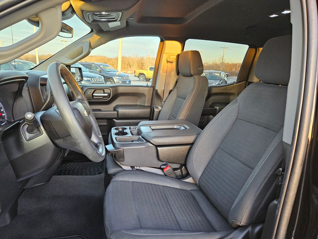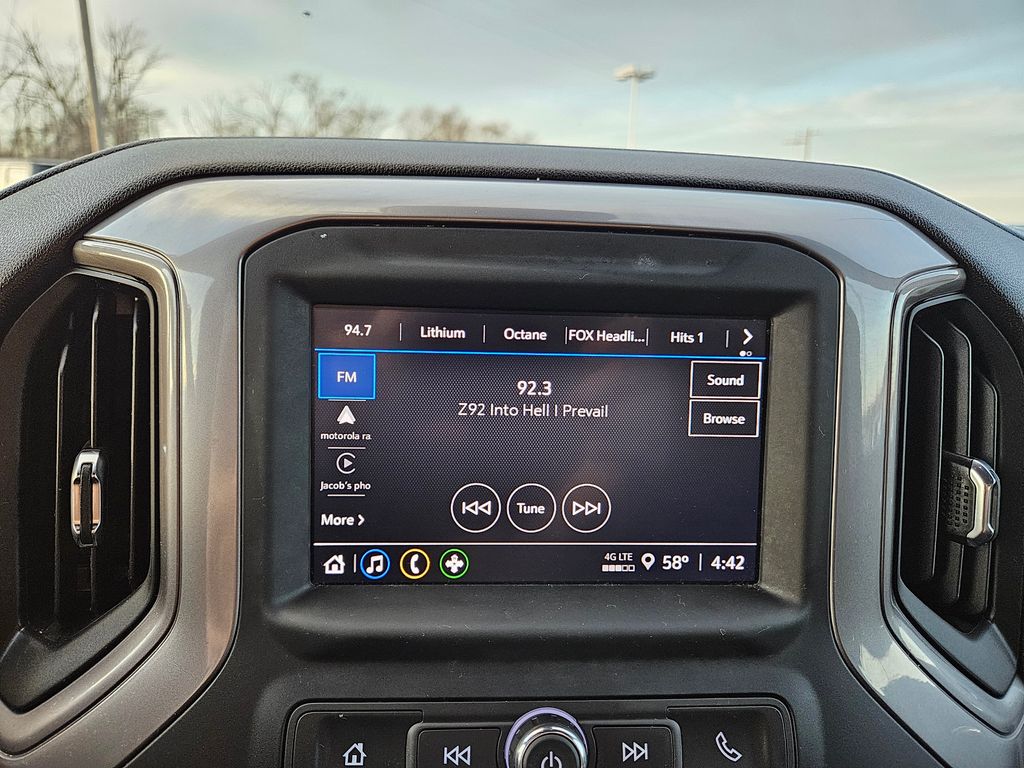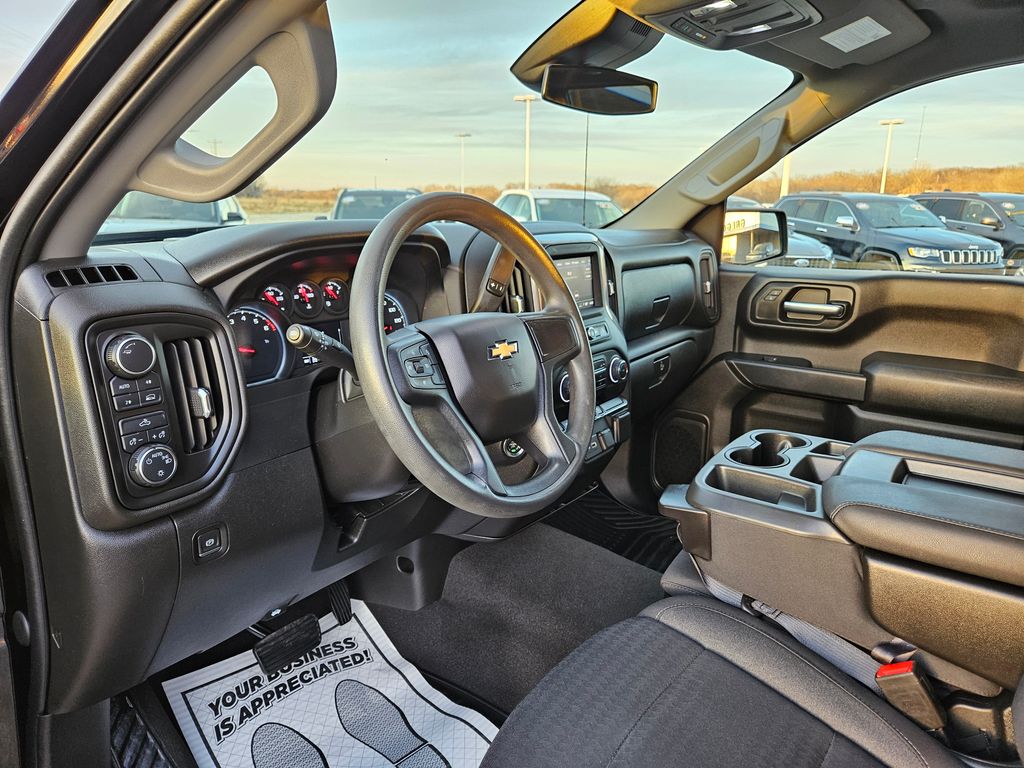 Climb inside our Custom cabin that's well-equipped for busy days with supportive cloth seats, 10-way power for the driver, a tilt-adjustable steering wheel, single-zone climate control, cruise control, 12V/120V power outlets, keyless access/ignition, and remote start. A 7-inch touchscreen, WiFi compatibility, Android Auto®, Apple CarPlay®, Bluetooth®, and a six-speaker sound system are onboard for quick connections and your favorite soundtrack. Added convenience comes with our Silverado's smart storage solutions.