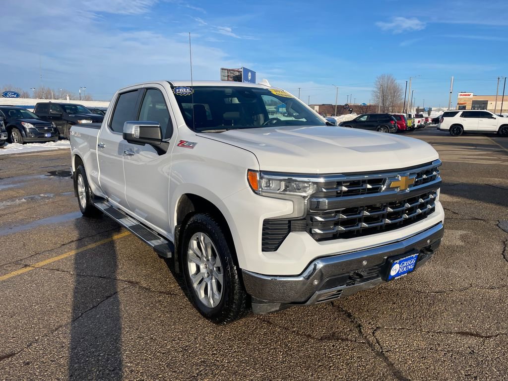 Conquer the road with our **Accident Free**2023**Chevrolet**Silverado 1500**LTZ**Crew Cab**4X4**Z71 Off-Road Package**Convenience Package II** that's bold and capable in Summit White! Motivated by a 5.3 Liter V8 generating 355hp to a 10 Speed Automatic transmission. This Four Wheel Drive truck complements that strength with a high-capacity suspension, and it sees nearly 20mpg on the highway. Designed to dominate, our Silverado tackles your days with LED lighting, fog lamps, 20-inch Sterling Silver wheels, a spray-on bedliner, a powered up/down tailgate, heated power-folding mirrors, perimeter lighting, and a trailer hitch with Hitch Guidance.