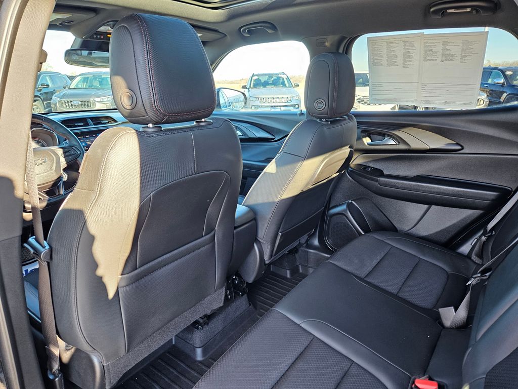 Sporty and spirited, our **2023**Chevrolet**Trailblazer**RS**Sun & Liftgate Package**Heated Seats** in Mosaic Black Metallic can turn your next drive into something special! Motivated by a TurboCharged 1.3 Liter 3 Cylinder supplying 155hp to a CVT that's ready for athletic action. Good to go where bigger machines can't reach, this Front Wheel Drive SUV is the right size for fun and returns nearly 32mpg on the highway. Dynamic good looks are on display with our Trailblazer's LED fog lamps, unidirectional gloss-black alloy wheels, black bumpers, matching Bowtie badges, heated power mirrors, roof rails, dual exhaust outlets, and our package's power sunroof and a hands-free liftgate.
