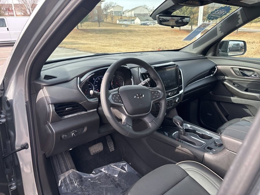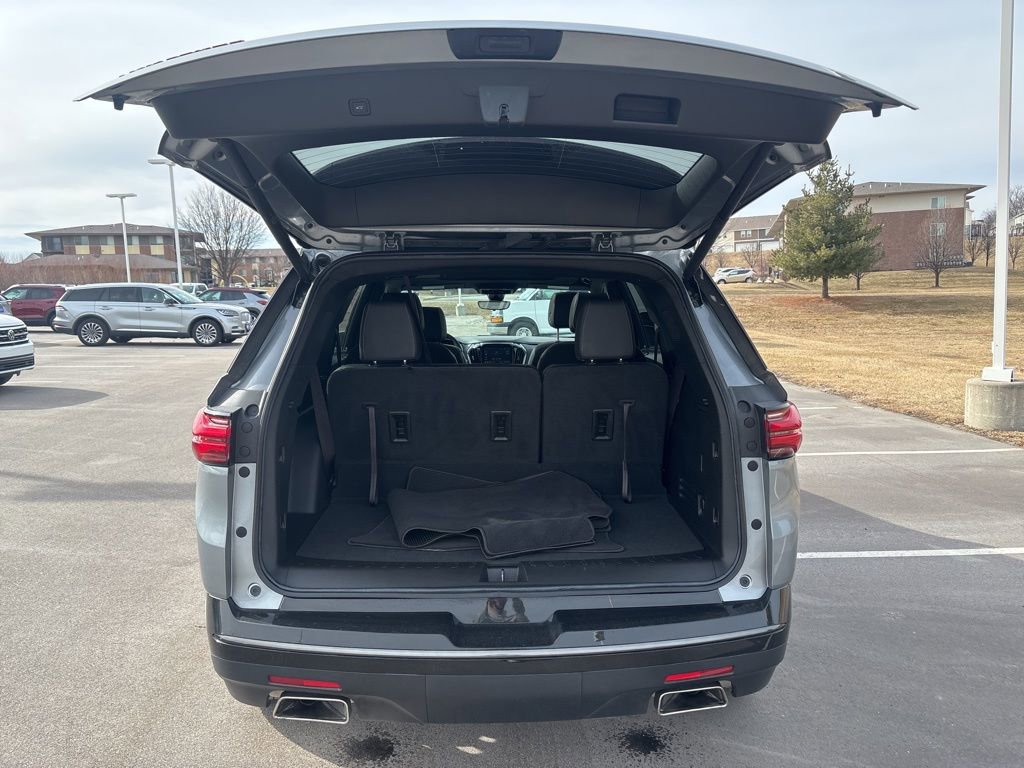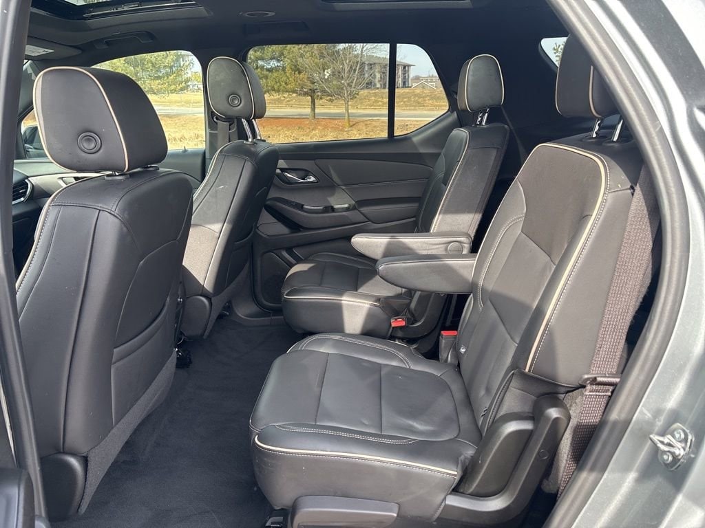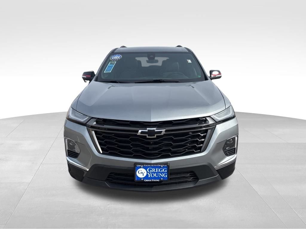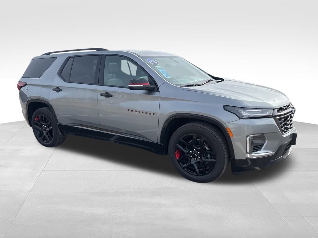 Our **One Owner**Accident Free**2023**Chevrolet**Traverse**Premier**Redline Edition**AWD**Sunroof**Navigation** is roomy, refined, and ready for fun in Sterling Gray Metallic! Motivated by a 3.6 Liter V6 generating 310hp tethered to a 9 Speed Automatic transmission. This All Wheel Drive SUV is also easy to maneuver in urban settings, and it scores nearly 25mpg on the highway. Sleek and sophisticated, our Traverse carries your crew in style with LED lighting, a hands-free liftgate, and our package's dual-pane sunroof, 20-inch gloss-black wheels, black roof rails, matching accents, Redline decals, and a trailer hitch with camera guidance.