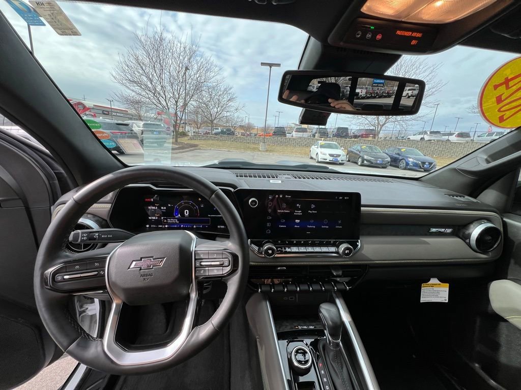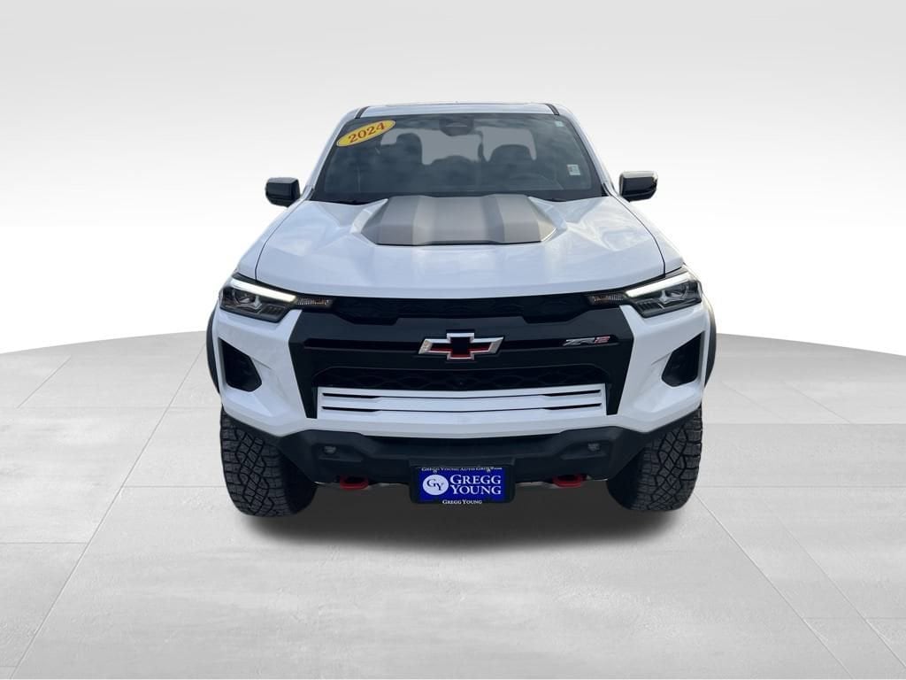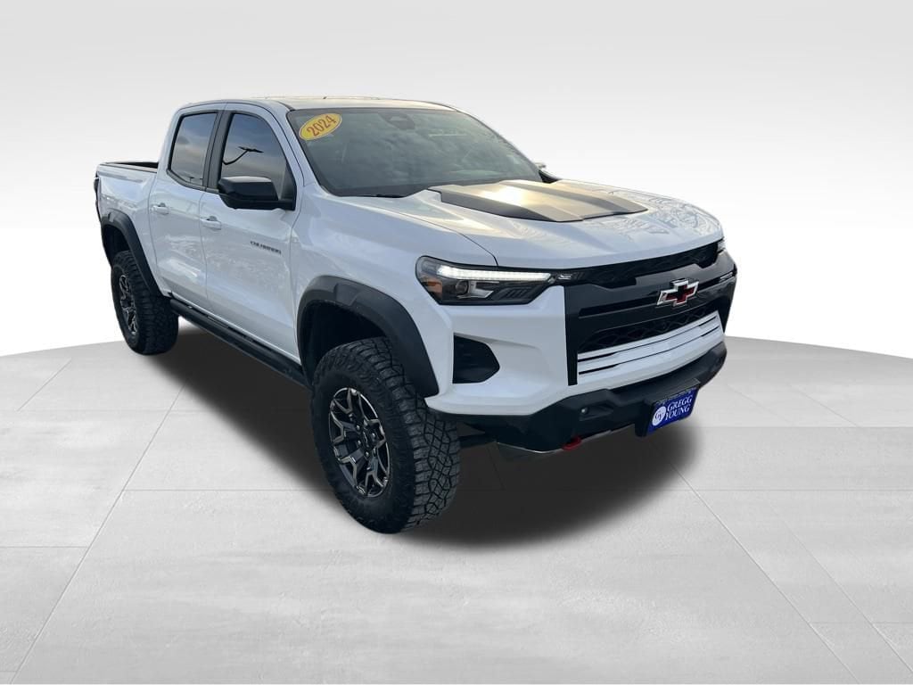 Dare to drive our **One Owner**Accident Free**2024**Chevrolet**Colorado**ZR2**Crew Cab**4X4**Navigation**Sunroof** in Summit White when trail domination is your goal! Powered by a 2.7L TurboMax offering 310hp to an 8 Speed Automatic transmission with multiple performance settings that include a dedicated Baja mode. This Four Wheel Drive truck also rides with driver-selectable fully locking differentials, a 3-inch lift, and DSSV Multimatic dampers for off-road action, and it returns nearly 17mpg on the highway. Form follows function for our Colorado exterior, detailed by LED lighting, fog lamps, alloy wheels, a sunroof, off-road bumpers/fender flares, a spray-on bedliner, and a StowFlex tailgate.