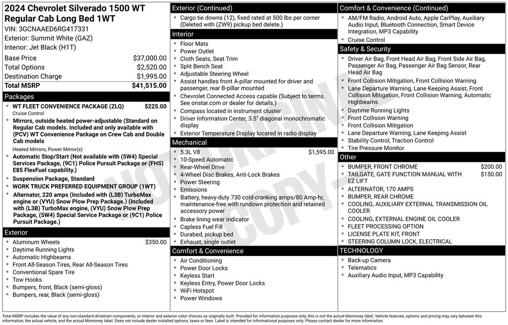 There's plenty of driver assistance, too. Chevrolet encourages around-the-clock safety with automatic braking, lane-keeping assistance, forward collision warning, pedestrian detection, an HD rearview camera, and more. It's time to raise the bar with our remarkable Silverado WT. Save this Page and Call for Availability. We Know You Will Enjoy Your Test Drive Towards Ownership!