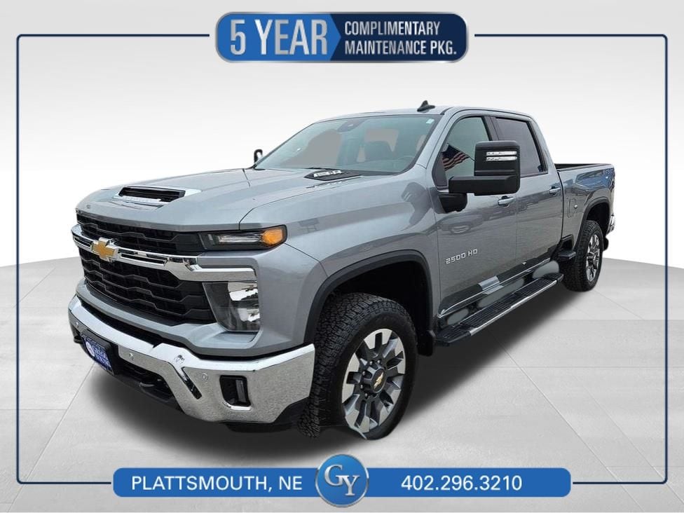 Rough and ready, our **2025**Chevrolet**Silverado 2500**LT**Crew Cab**4X4**Convenience Package**Heated Steering Wheel** rides with terrific truck appeal in Sterling Gray Metallic! Motivated by a 6.6 Liter V8 offering 401hp to a 10 Speed Allison Automatic transmission for muscular towing and hauling capabilities. An HD suspension and auto-locking rear differential help you handle hard work without breaking a sweat, and this Four Wheel Drive truck stands strong with an impressive range of standard features. Highlights from our Convenience Pack add LED fog lamps/cargo-bed lighting to chrome bumpers, alloy wheels, power trailering mirrors, a spray-on bedliner, an EZ lift and lower tailgate, side/rear bed steps, and a trailer hitch.