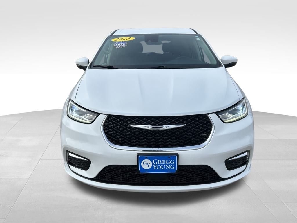 Taking you further, our **2023**Chrysler**Pacifica**Touring L**Minivan**Heated Seats**Heated Steering Wheel** in Bright White helps you take on the daily grind and win! Powered by a 3.6 Liter Pentastar V6 that serves up 287hp to a 9 Speed Automatic transmission for family-focused capability. This Front Wheel Drive minivan also sees nearly 28mpg on the highway with athletically sophisticated good looks. Premium Pacifica details include LED lighting, fog lamps, power-sliding side doors, a power liftgate, heated power mirrors, and alloy wheels.