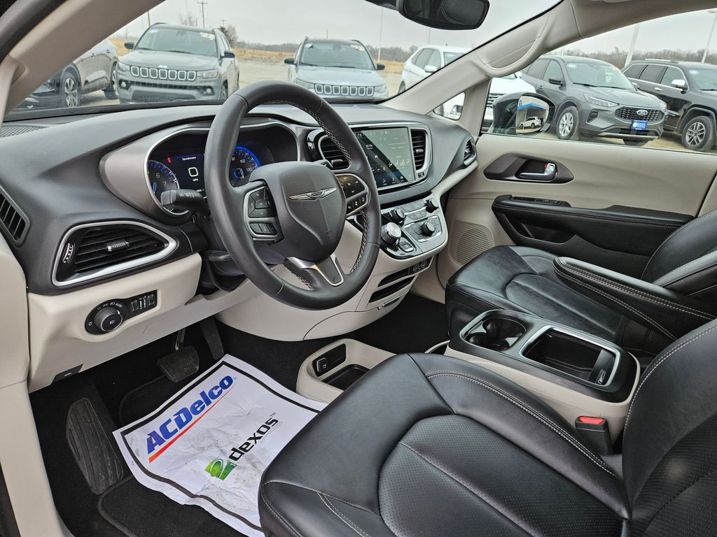 Our **2024**Chrysler**Pacifica**Touring L**Minivan**Apple CarPlay/Android Auto**Heated Leather Seats** is a power player among premium people movers in Diamond Black Crystal Pearlcoat! Motivated by a 3.6 Liter Pentastar V6 supplying 287hp to a 9 Speed Automatic transmission. This Front Wheel Drive minivan is also easy to park with composed handling, and it achieves nearly 28mpg on the highway when long road trips are on the calendar. Sleek and sophisticated, our Pacifica puts on a style show with LED lighting, fog lamps, a gloss-black grille, gloss-black mirror caps, alloy wheels, and first-functionality with power sliding side doors and a power liftgate.