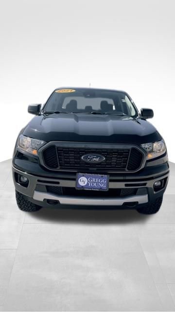 Our Accident Free 2021 Ford Ranger XLT SuperCrew 4X4 with the Equipment Group 301A is a tough truck that's here to take charge of your world in Shadow Black! Powered by a TurboCharged 2.3 Liter EcoBoost 4 Cylinder providing 270hp tethered to a 10 Speed SelectShift Automatic transmission that's engineered to stand up to what you get into. This Four Wheel Drive truck also has composed road manners, returns nearly 24mpg on the highway, and looks great at work or play. Bold Ranger design cues include fog lamps, a black mesh grille, matching mirror caps, a power-locking tailgate, running boards, Sport box decals, and premium alloy wheels under prominent fenders.