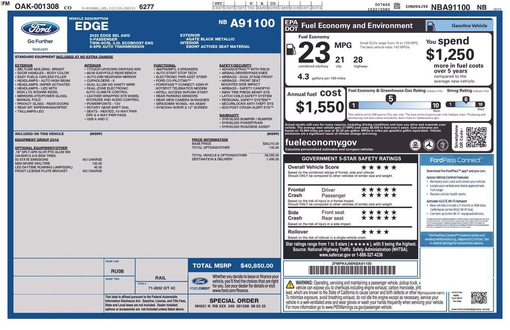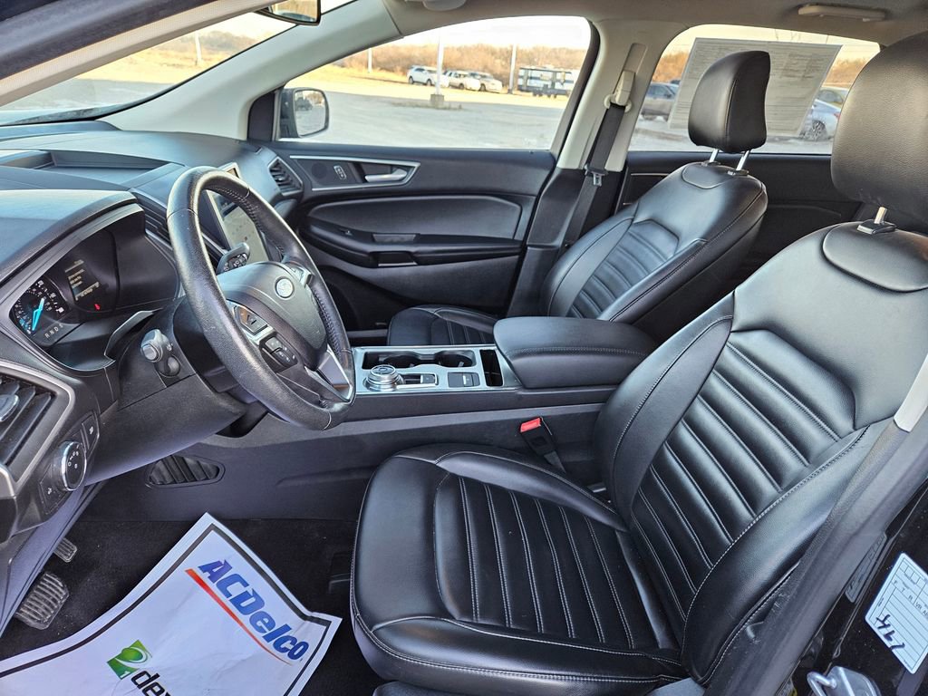 Enjoy a fresh approach to travel with our 2022 Ford Edge SEL AWD in Agate Black Metallic! Motivated by a TurboCharged 2.0 Liter EcoBoost 4 Cylinder offering 250hp connected to an 8 Speed Automatic transmission to go from town to trail with ease. This All Wheel Drive SUV also achieves nearly 28mpg on the highway with the kind of responsive handling that brings a smile to your face. You'll have the Edge when it comes to design, too, with LED lighting, dual-exhaust outlets, a bright grille, heated power mirrors, and bold alloy wheels.