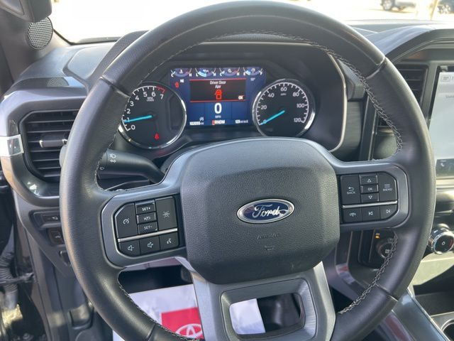 Drive our **2023**Ford**F-150**XLT**SuperCrew**4X4**High Package**Running Boards** in Agate Black Metallic, and discover every detail matters! Powered by a Twin-TurboCharged 2.7 Liter EcoBoost V6 serving up 325hp connected to a 10 Speed Automatic transmission so you can get more done with less effort. This Four Wheel Drive truck is also easy to maneuver at work or play, and it sees nearly 24mpg on the highway. Rugged good looks are standard with our F-150, which showcases chrome bumpers, alloy wheels, and our High Pack that includes LED headlights/fog lamps, a Class IV hitch, a remote tailgate release, and a SecuriCode keypad.