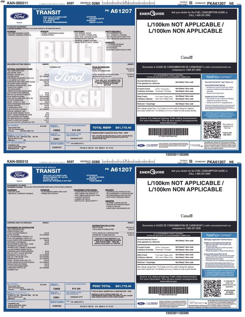 White 2023 Ford Transit-250 AWD 10-Speed Automatic with Overdrive 3.5L V6 Flex Fuel