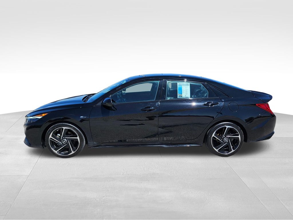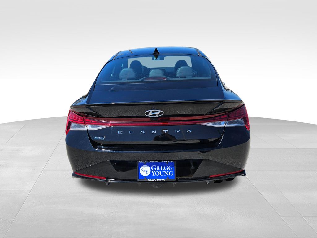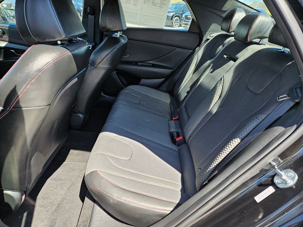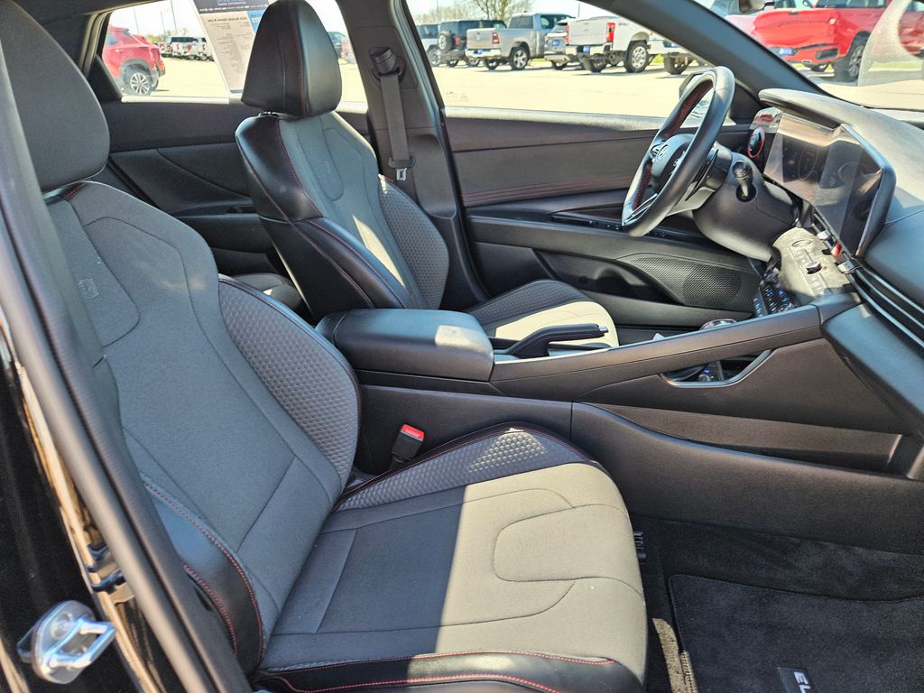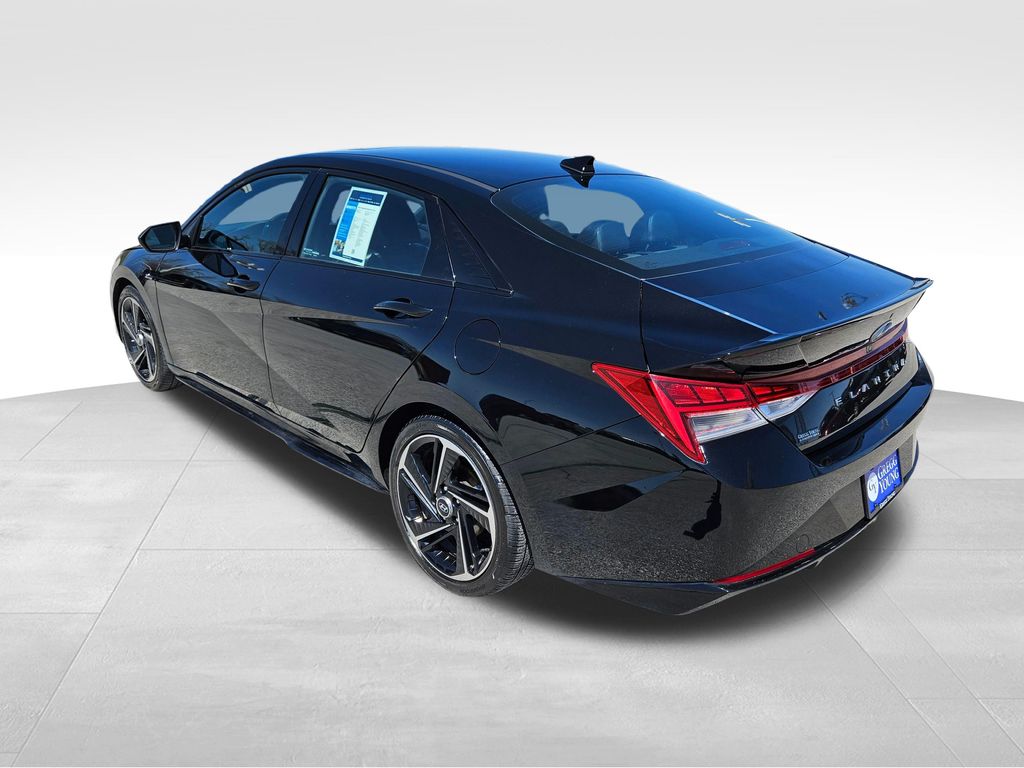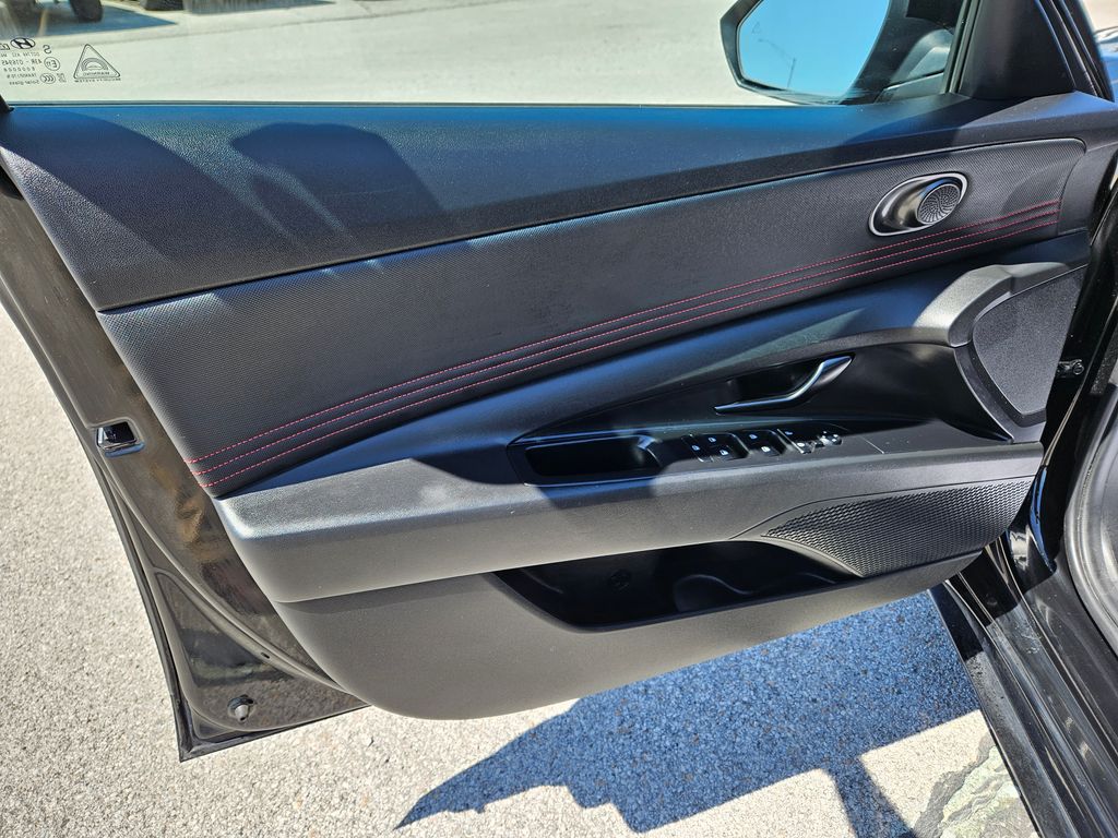 Our fierce One Owner, Accident Free 2023 Hyundai Elantra N Line Sedan is fantastically fun to drive in Black! Powered by a TurboCharged 1.6 Liter 4 Cylinder that supplies 201hp connected to a paddle-shifted 7 Speed Dual-clutch Automatic transmission for dynamic acceleration. This Front Wheel Drive sedan also has athletic handling, and it returns nearly 36mpg on the highway with a spirited sport-compact design. Just check out the way our Elantra blends its unique N Line gloss-black grille, bumpers, and rear diffuser with LED lighting, a power sunroof, a hands-free trunk, alloy wheels, heated power mirrors, and twin chrome exhaust outlets.