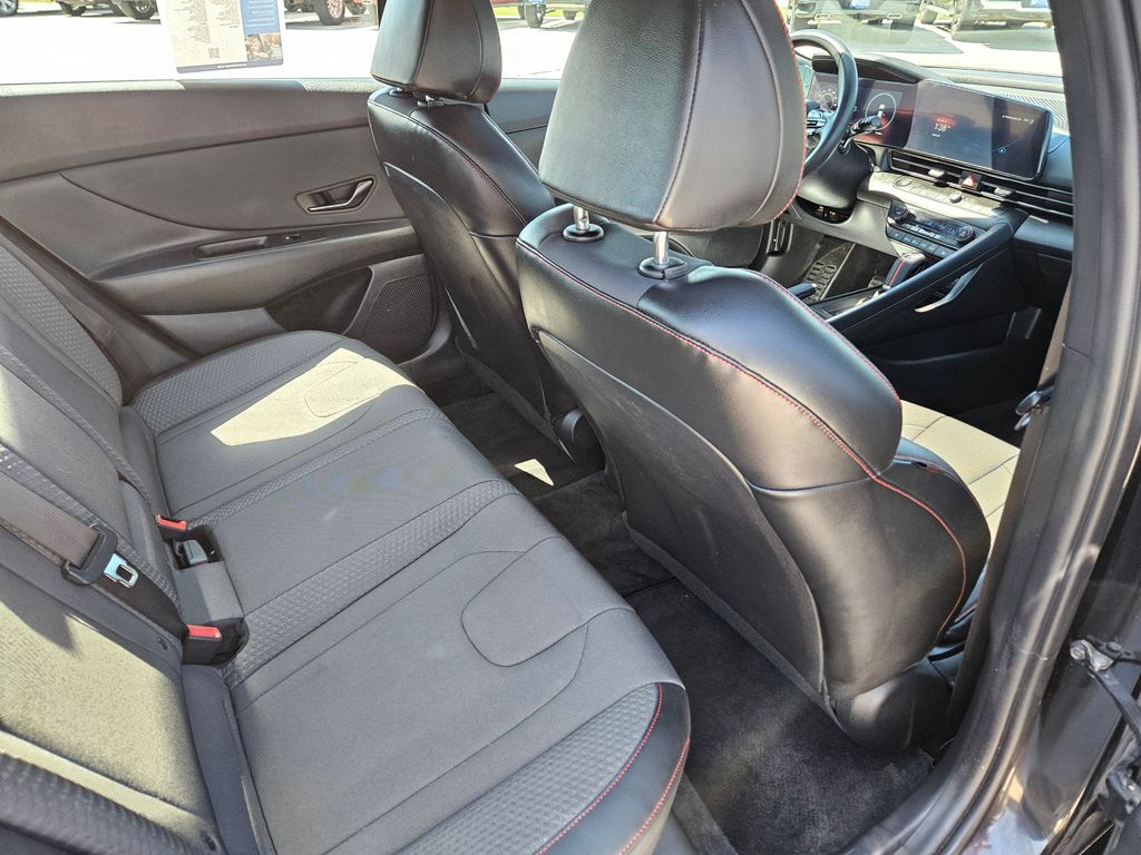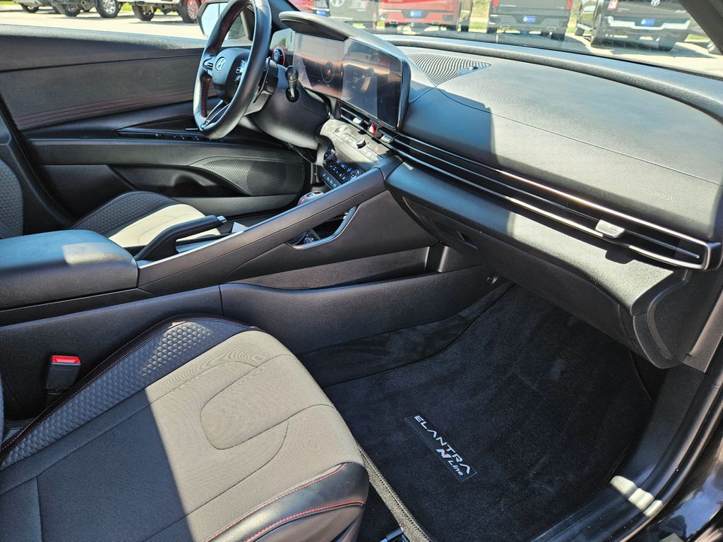More appealing details greet you in our N Line cabin, including exclusive leatherette/cloth heated front seats, power lumbar support for the driver, a leather-wrapped N Line steering wheel, dual-zone automatic climate control, alloy pedals, and keyless access/ignition. A smart infotainment system is at your service with a 10.25-inch driver display, a 10.25-inch touchscreen, full-color navigation, Android Auto/Apple CarPlay, Bluetooth, wireless charging, voice recognition, and six-speaker audio.