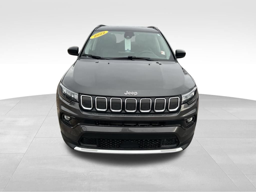 Our **2022**Jeep**Compass**Limited**4X4**Heated Leather Seats**Heated Steering Wheel** is ready to take you on your next adventure with premium capability and style in Granite Crystal Metallic w/ Black Two Tone! Motivated by a 2.4 Liter 4 Cylinder providing 180hp tethered to a 9 Speed Automatic transmission that's at home whether you're commuting or conquering the great outdoors. A Selec-Terrain system adds fantastic functionality to our Four Wheel Drive SUV, which scores nearly 30mpg on the highway. Our Compass also catches your eyes with its bold design backed by LED lighting, fog lamps, roof rails, heated power mirrors, alloy wheels, and a black roof for a dynamic two-tone appearance.