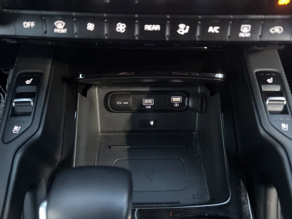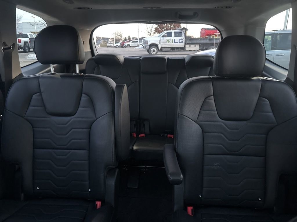 Spacious and well-equipped, our SX cabin supports better family adventures with leather heated/ventilated front seats, second-row captain's chairs, a versatile third row, a heated leather-wrapped steering wheel, dual-zone automatic climate control, pushbutton ignition, remote start, and a premium infotainment setup that puts you in charge of a 10.25-inch touchscreen, full-color navigation, Android Auto®/Apple CarPlay®, Bluetooth®, wireless charging, Harman Kardon audio, and a cabin intercom for keeping tabs on rear passengers.