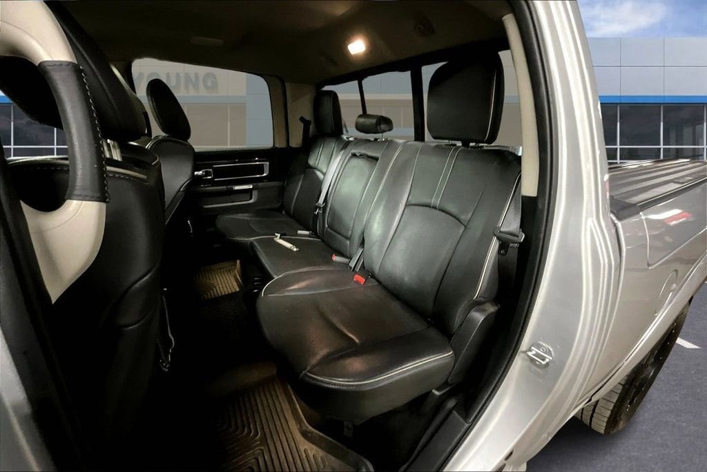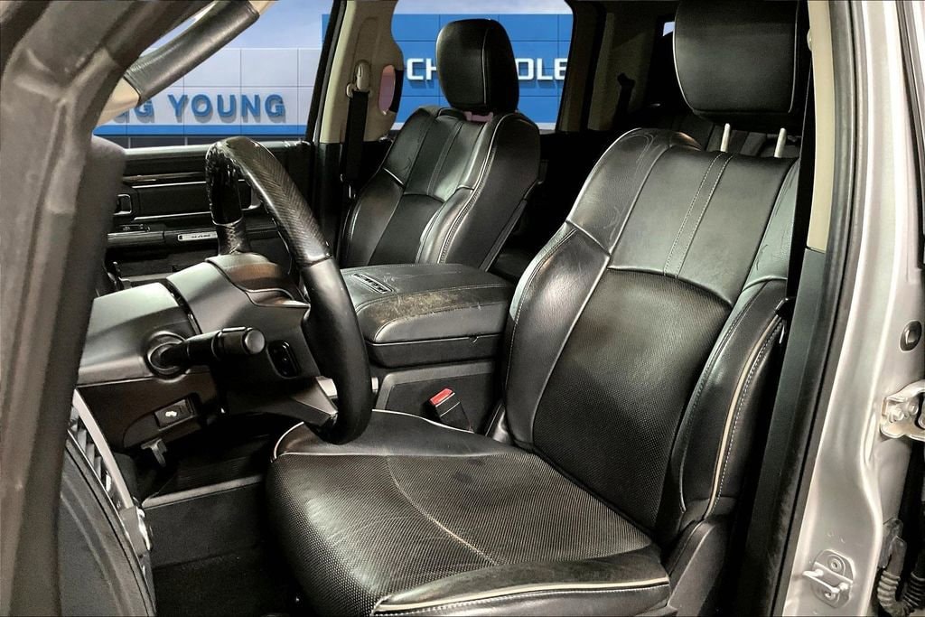 Inside our Laramie Longhorn, you'll find a prominent central touchscreen display with a rearview camera, UConnect® with voice control, full-color navigation, and a power outlet to keep you charged. Enjoy traveling in comfort and style with power-adjustable filigree heated/ventilated leather seats, a heated steering wheel, memorized driver settings, and a premium sound system. Anyone who sees it will admire the upscale interior thoughtfully designed to meet your needs.