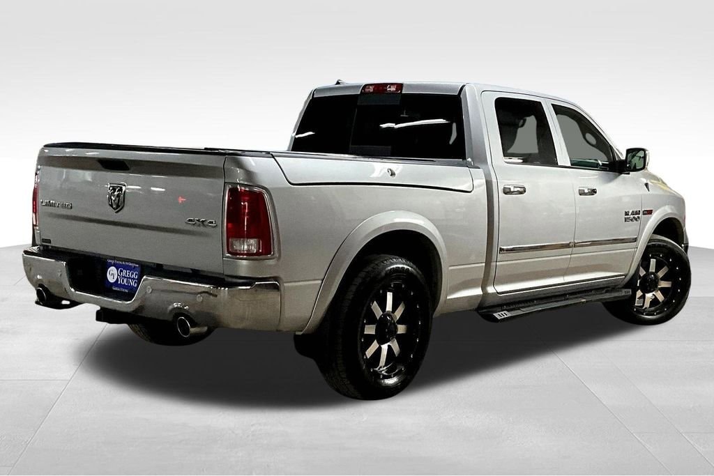 Luxury and power abound in our **2015**RAM 1500**Laramie Longhorn**Crew Cab**4X4**Navigation**Heated Steering Wheel** presented in striking Bright Silver Metallic. Powered by a TurboCharged 3.0 Liter Eco-Diesel 6 Cylinder that offers 240hp and massive torque while paired with a TorqueFlite 8 Speed Automatic transmission. This efficient Four Wheel Drive team rewards you with nearly 22mpg on the road, a smooth ride, and tremendous towing capacity! You'll make a powerful first impression in your 1500 that is highlighted by running boards, a distinct grille, and prominent wheels that enhance the aerodynamics of this machine.