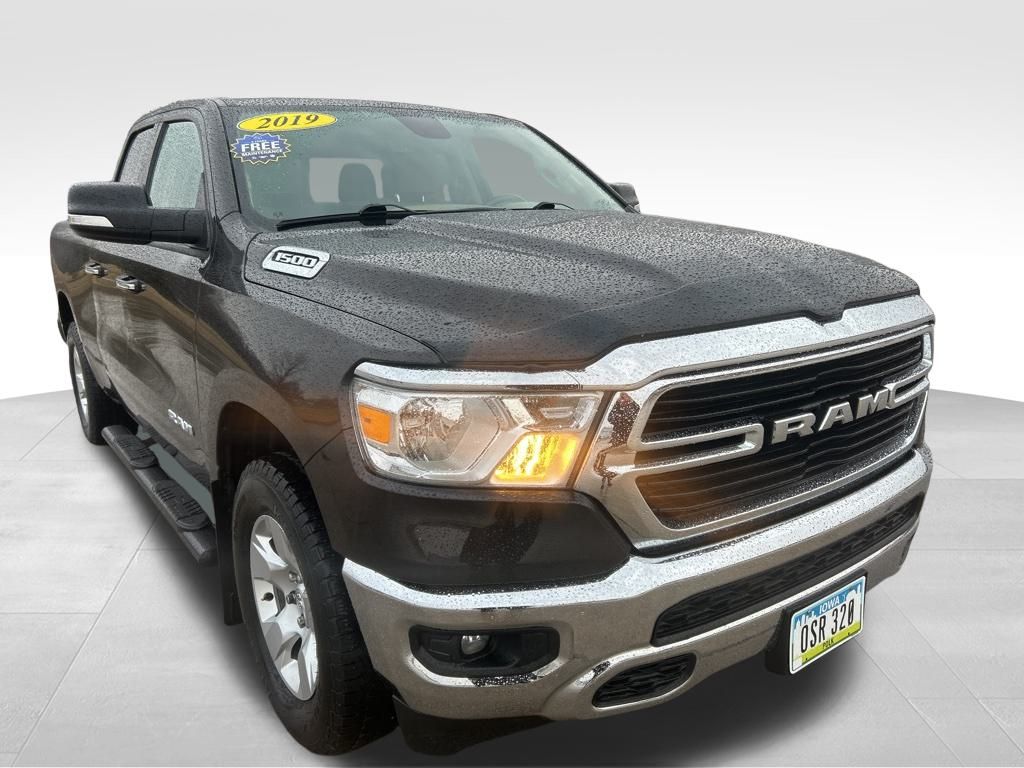 Step up to our Accident Free 2019 RAM 1500 Big Horn Quad Cab 4X4 with the Level 1 Equipment Pack in Rugged Brown Pearl and get ready to go! Motivated by a 3.6 Liter Pentastar V6 that offers 305hp paired with an 8 Speed Automatic transmission for high-capability pulling power. This Four Wheel Drive truck also provides a confidence-inspiring ride and the ability to see nearly 24mpg on the highway while grabbing your attention with style and strength. Check out the quad halogen headlights, fog lamps, alloy wheels, cargo-bed lighting, and our Level 1 Pack for a Class IV hitch receiver and heated power-folding mirrors with puddle lamps.
