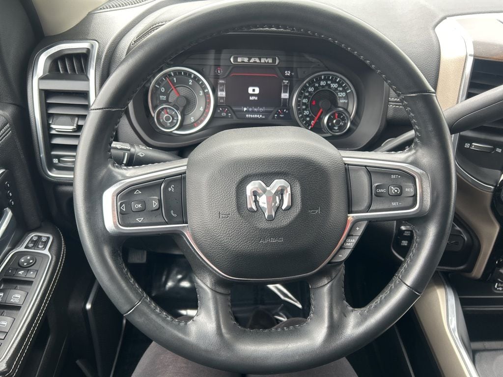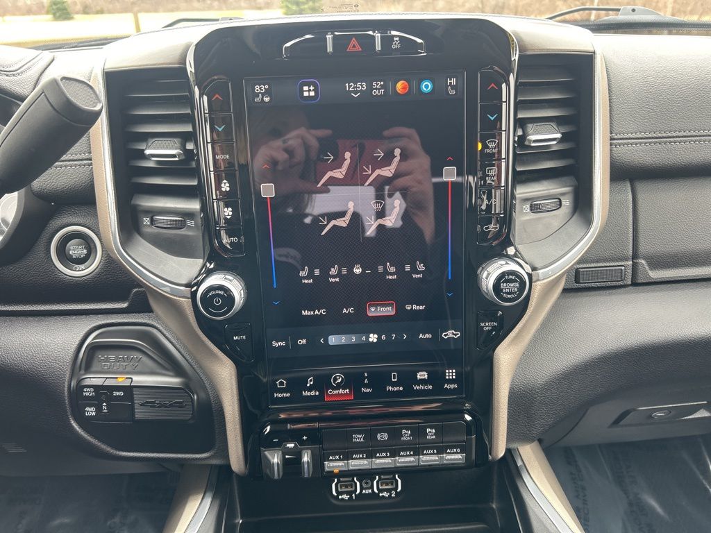 Tough jobs get a little easier in our Laramie cabin with heated and ventilated leather power front seats, a heated leather steering wheel, dual-zone automatic climate control, keyless access/ignition, remote start, and our Level 1 Pack's powered rear window, power-adjustable pedals, 12-inch touchscreen, and Off-Road Info/Trailer Tow Pages. Intelligent infotainment highlights further include a 7-inch driver display, full-color navigation, WiFi compatibility, Alexa Built-In, Android Auto/Apple CarPlay, voice command, Bluetooth, and Alpine audio.