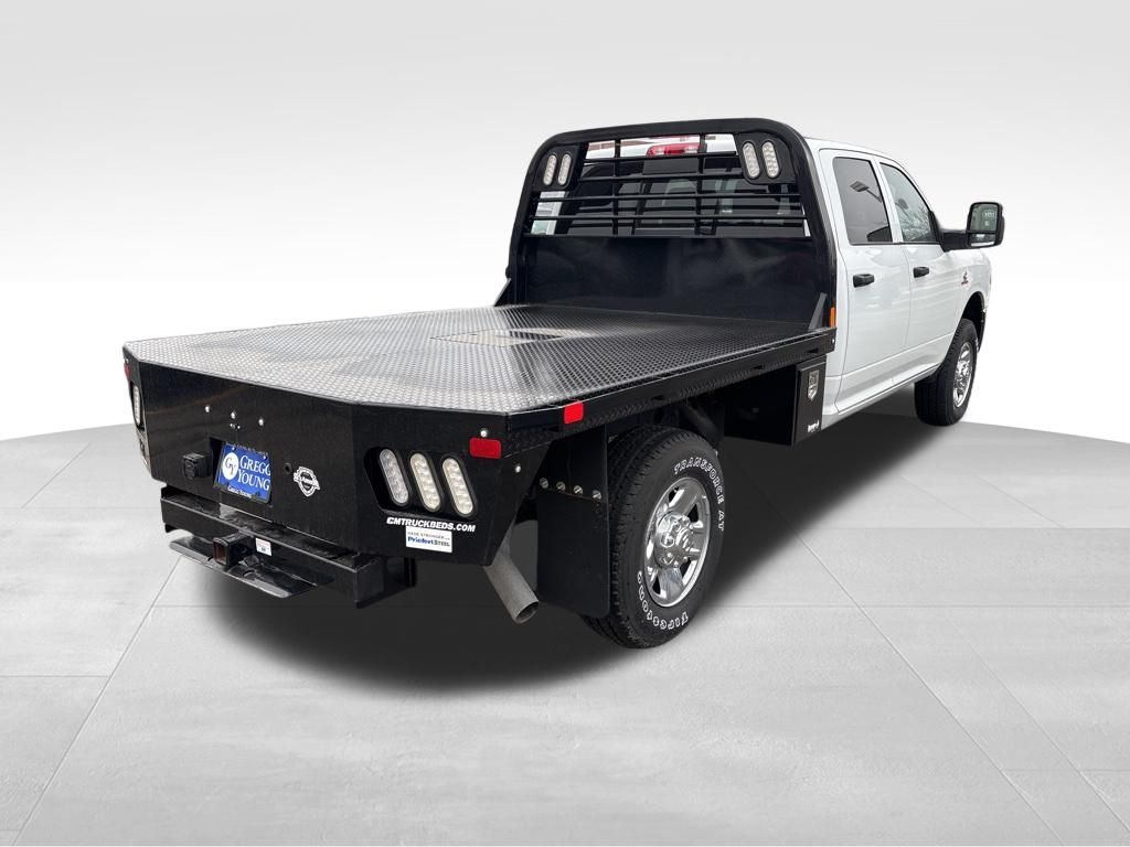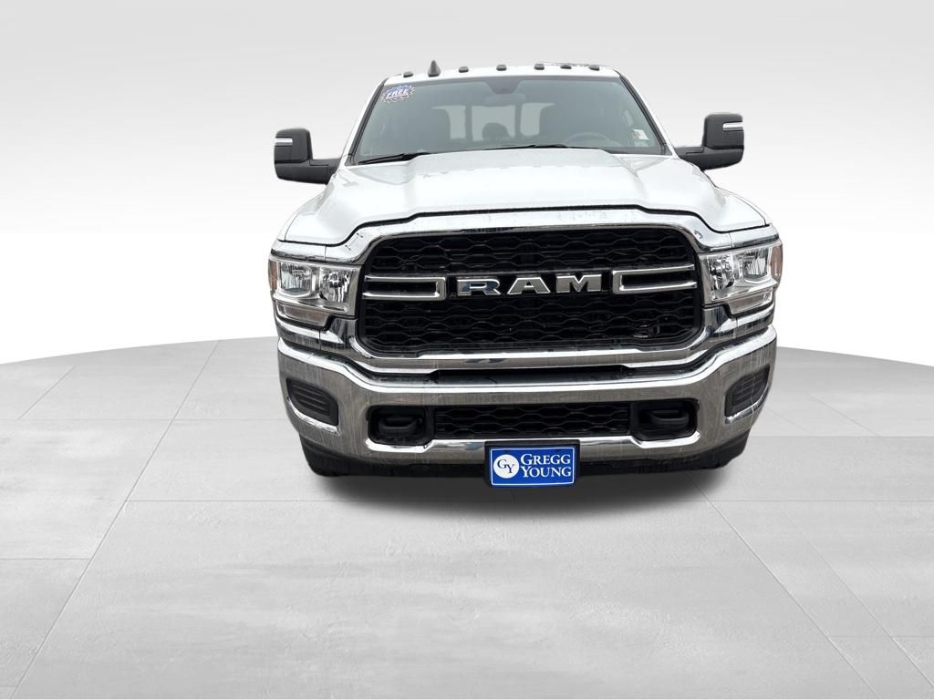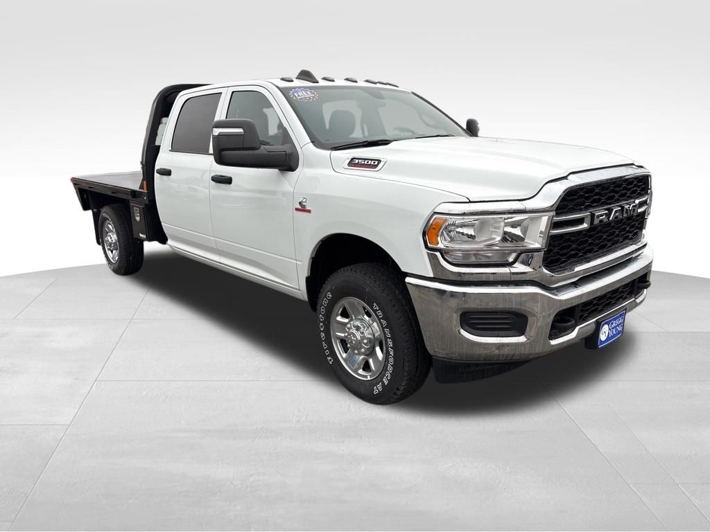 Our Diesel-driven Accident Free 2024 RAM 3500 Tradesman Crew Cab 4X4 with the Level 2 Pack is hungry for hard work in Bright White! Powered by a TurboCharged 6.7 Liter Cummins Diesel 6 Cylinder offering 370hp and 850lb-ft of torque to a 6 Speed Aisin Automatic transmission for heavy-duty applications. This Four Wheel Drive truck also features an anti-spin rear differential to deliver enhanced traction, and its bold design is backed by intelligent functionality. Check out the matte-black mesh grille, black trim, quad headlamps, an LED hitch lamp, a Class V hitch receiver, and our Level 2 Pack for heated power trailer mirrors with built-in running lamps.