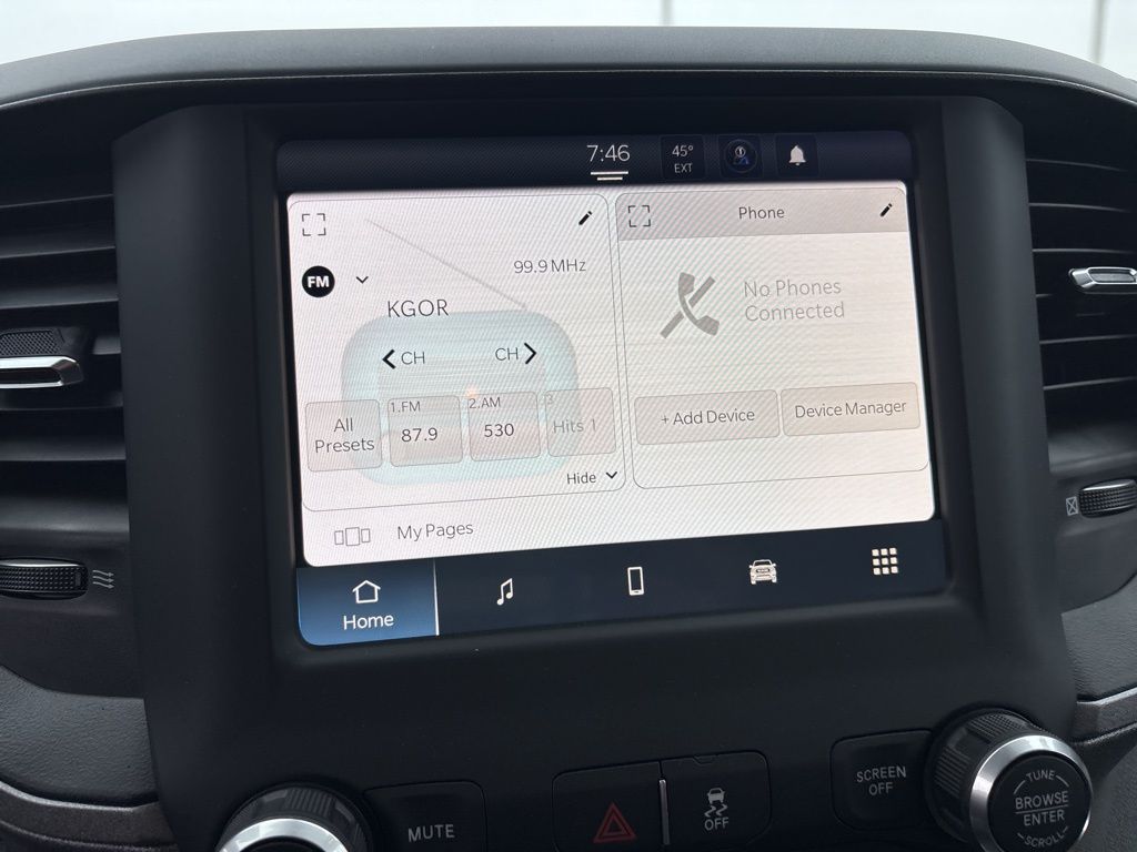 Our Tradesman cabin is a strong foundation for getting things done. It boasts our Level 2 Pack to adds comfortable cloth seats and a power rear window to a tilt-adjustable steering wheel, air conditioning, power accessories, cruise control, a 12V power outlet, keyless access/ignition, door-sill scuff pads, and a 3.5-inch driver display. Convenient digital resources include a 5-inch touchscreen with voice recognition, Bluetooth®, and a six-speaker sound system with SiriusXM/compatibility. There's plenty of smart storage, too!