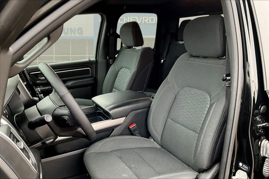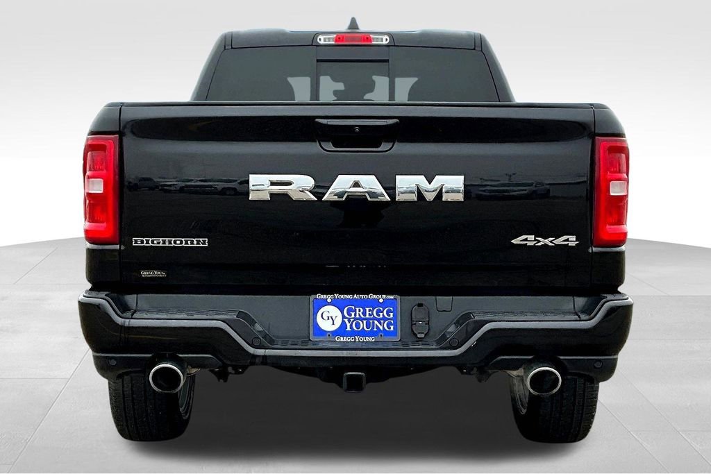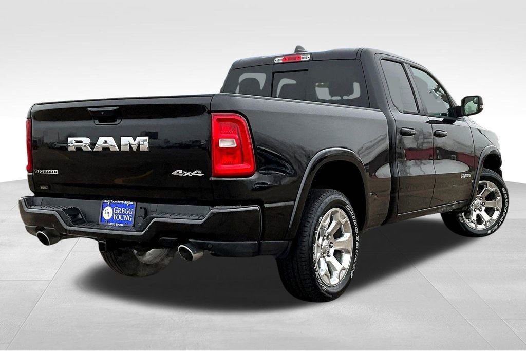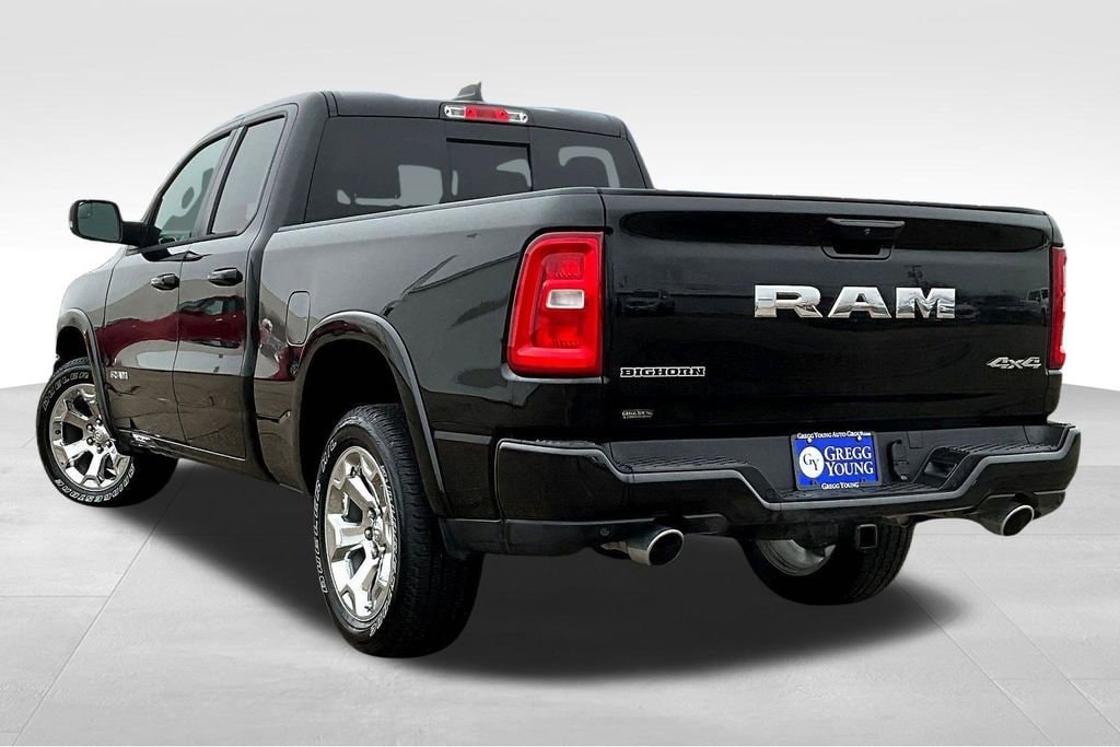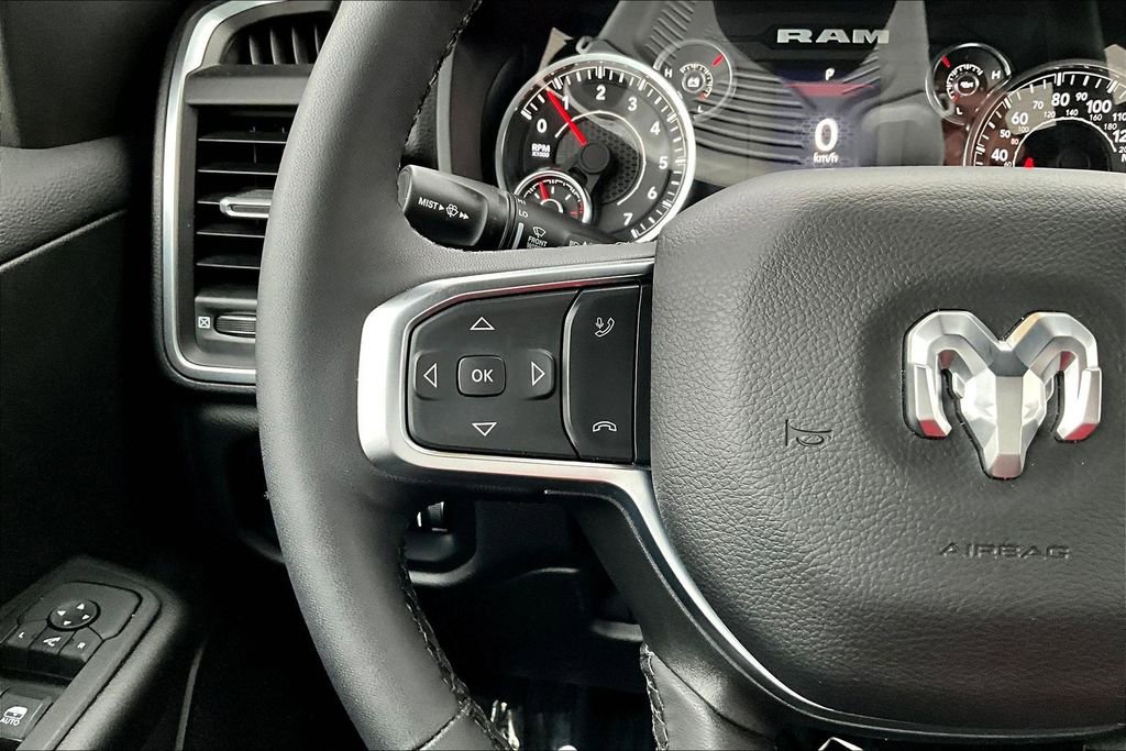 Tough and powerful, our **2025**RAM 1500**Big Horn**Quad Cab**4X4**Level 1 Package**Sport Appearance Package** is built for bold challenges in Diamond Black Crystal Pearl! Motivated by a Twin-TurboCharged 3.0 Liter Hurricane 6 Cylinder supplying 420hp to an 8 Speed Automatic transmission for robust real-world towing and hauling. Responsive handling inspires confidence in this Four Wheel Drive truck, which scores nearly 24mpg on the highway. Our RAM also rides with dynamic details like LED lighting, fog lamps, a Class IV receiver hitch, bold fender flares, alloy wheels, and a mighty RAM grille. Level 1 upgrades include multifunction mirrors and bed-mounted outlets powered by a 400W inverter.