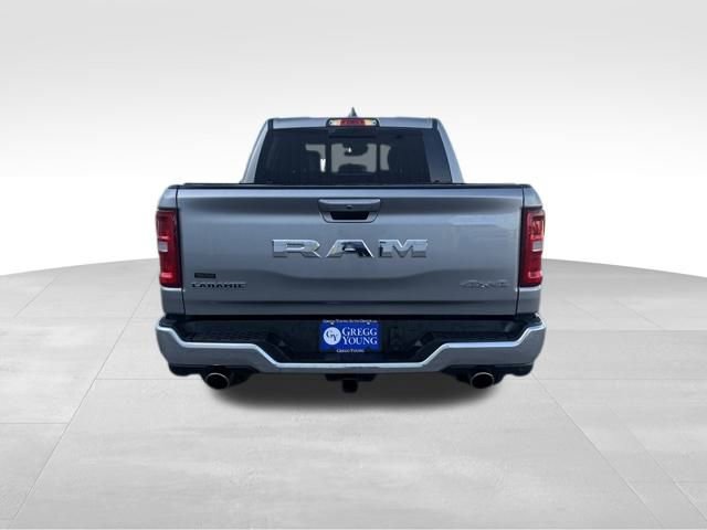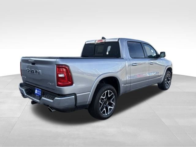 Our bold **One Owner**Accident Free**2025**RAM 1500**Laramie**Crew Cab**4X4**Level 2 Equipment Package**Navigation** in Billet Silver Metallic elevates strength without compromising capability! Powered by a Twin-TurboCharged 3.0 Liter Hurricane 6 Cylinder delivering 420hp to an 8 Speed Automatic transmission for dealing with heavy trailers and large payloads. This Four Wheel Drive truck is also easy to handle in town and sees nearly 24mpg on the highway. A high-capability head-turner, our RAM shows off LED lighting, fog lamps, stylish fender flares, 20-inch wheels, a Class IV hitch receiver, heated power-fold mirrors, and a 400W inverter.