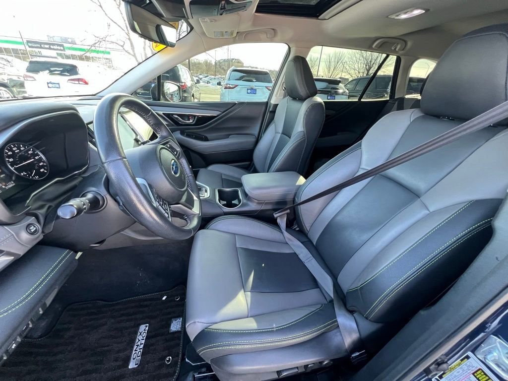 Our stylish **One Owner**Accident Free**2023**Subaru**Outback**Onyx Edition XT**AWD**Sunroof**Navigation** in Cosmic Blue Pearl adds dark details to go with its aggressive performance! Motivated by a TurboCharged 2.4 Liter BOXER 4 Cylinder that offers 260hp to a paddle-shifted Lineartronic CVT for sporty capability. This All Wheel Drive SUV also has exceptional traction with standard X-MODE and sees nearly 29mpg on the highway. LED headlights, fog lamps, black alloy wheels, a power sunroof, a hands-free liftgate, and eye-catching Crystal Black Silica mirror caps help bring out the bold side of our Outback's design.