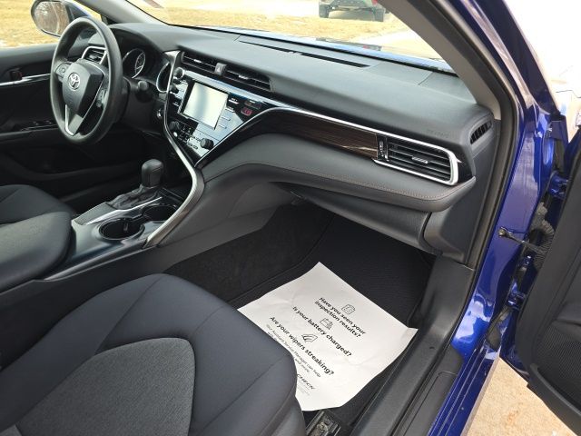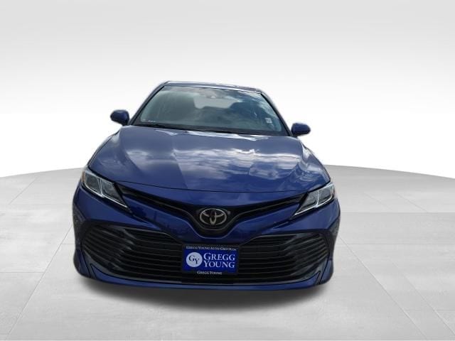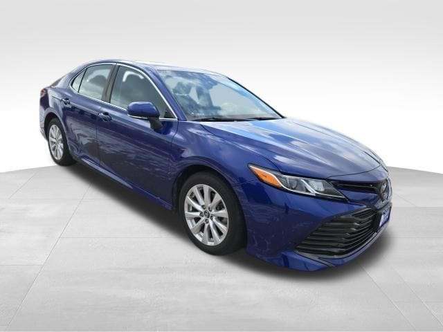 Our Blue **Accident Free**2018**Toyota**Camry**LE**Sedan**Alloy Wheels**Rear Camera** rewards you with true efficiency and a terrific design. Powered by a 2.5 Liter Dynamic Force 4 Cylinder offering 203hp while paired with an 8 Speed Direct Shift Automatic transmission for quick acceleration. Impress yourself and put this Front Wheel Drive sedan to the test on twisty roads while it also sees nearly 39mpg on the highway. Crafted with athletic and graceful body styling, our Camry will immediately get your attention with LED lighting, a dramatic grille, and striking alloy wheels.