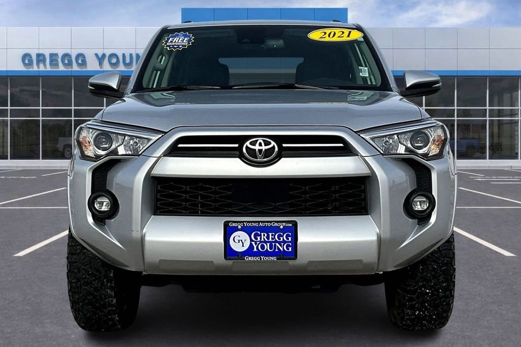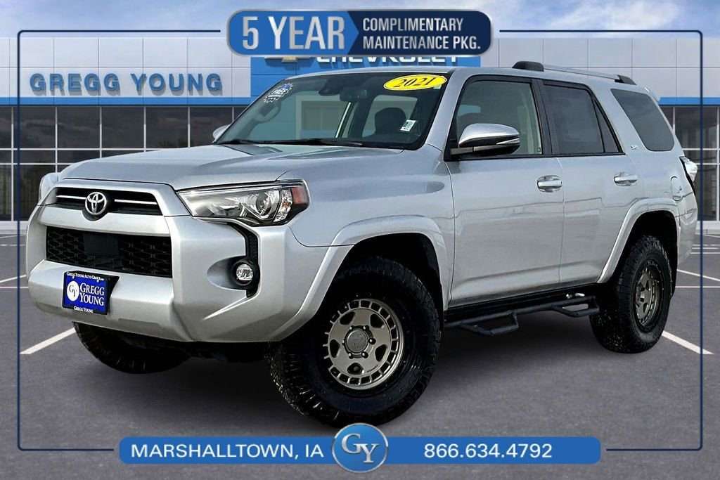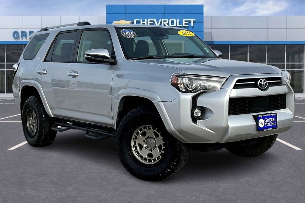 Our robust **Accident Free**2021**Toyota**4Runner**SR5 Premium**4WD**Apple CarPlay/Android Auto**Assist Steps** in Silver can haul your family and your trailer with style and strength! Motivated by a 4.0 Liter V6 that delivers 270hp connected to a 5 Speed Automatic transmission for rugged capability. Also known for confident handling on the trail or the pavement, this Four Wheel Drive SUV returns nearly 19mpg on the highway and comes standard with LED lighting, fog lamps, skid plates, alloy wheels, roof rails, mudguards, and heated power mirrors with built-in turn signals. It's a bold look that's ready to draw attention!Room for five and impressive cargo space are standard in our SR5 Premium cabin, along with the comfort and convenience of heated SofTex® front seats, eight-way power for the driver, a leather-wrapped steering wheel, air conditioning, and Toyota's Smart Key with pushbutton ignition. As for premium technology, an 8-inch touchscreen, full-color navigation, Android Auto®/Apple CarPlay®, Amazon Alexa and WiFi compatibility, and an eight-speaker audio system are only a few highlights.Toyota has your back with a rearview camera and advanced Safety Sense technology that includes adaptive cruise control, lane departure alert, automatic emergency braking, and pedestrian detection. Our 4Runner SR5 Premium is a fantastic SUV that more than lives up to its heritage of toughness! Save this Page and Call for Availability. We Know You Will Enjoy Your Test Drive Towards Ownership!