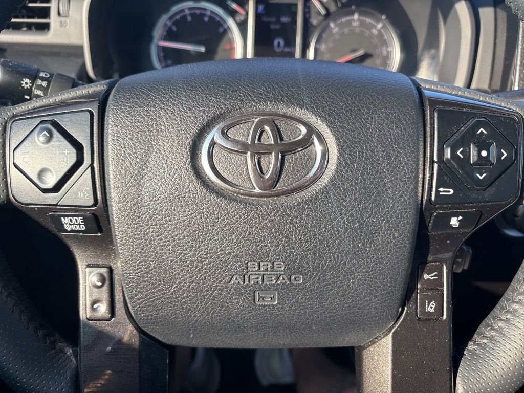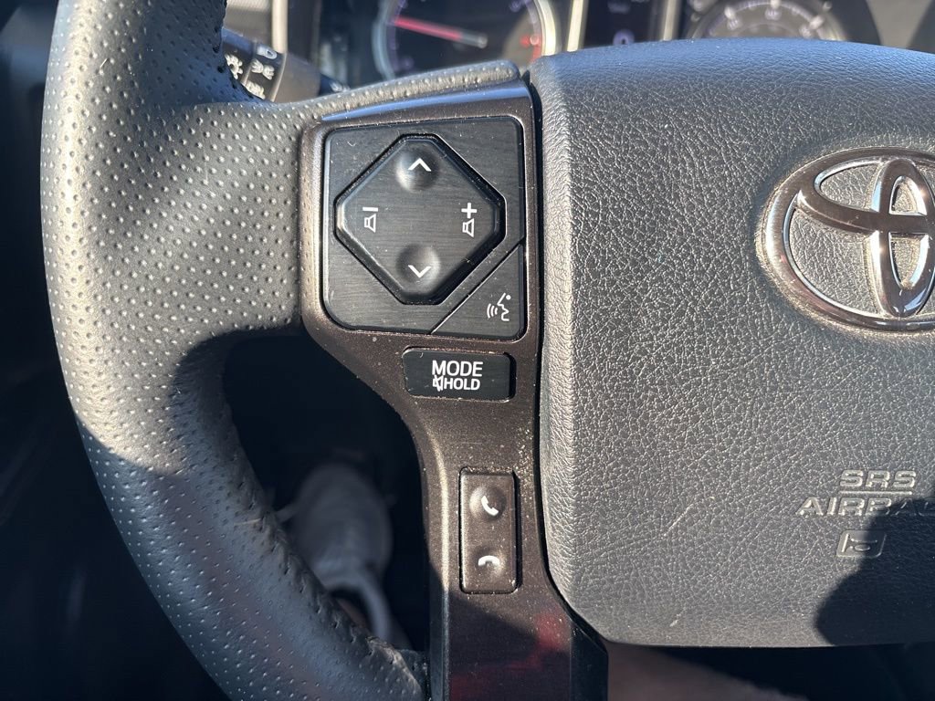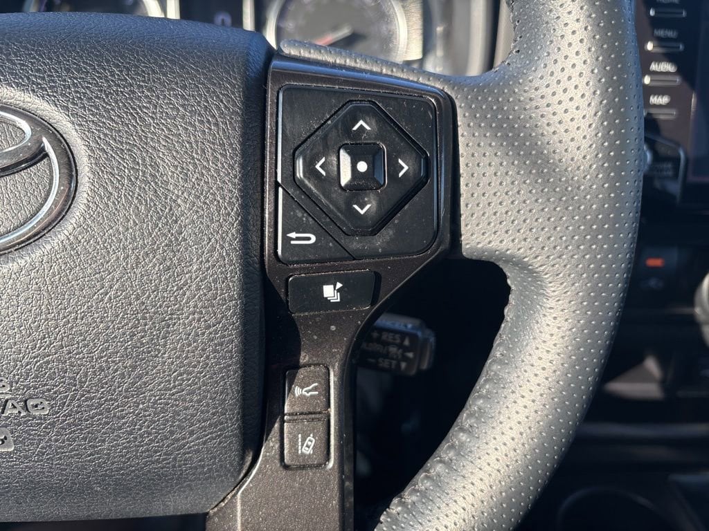 Our TRD Off-Road cabin is roomy and well-equipped for adventure with comfortable fabric seats, eight-way power for the driver, a leather-wrapped steering wheel, air conditioning, keyless access/ignition, a 120V power outlet, and an overhead control console. An 8-inch touchscreen is the center of attention on the dashboard, supported by voice control, WiFi compatibility, Android Auto®/Apple CarPlay®, Bluetooth®, and an eight-speaker sound system with HD Radio.