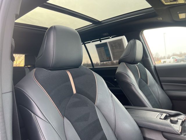 Heated/ventilated leather power front seats, heated/ventilated second-row captain's chairs, and a comfortable third-row pamper folks in our Platinum cabin. It also delivers deluxe details like a heated leather steering wheel, tri-zone automatic climate control, keyless access/ignition, and 120V power outlets. A 12.3-inch touchscreen, 12-inch driver display, connected navigation, WiFi compatibility, Android Auto®, Apple CarPlay®, Bluetooth®, wireless charging, and JBL audio supply superior connectivity.